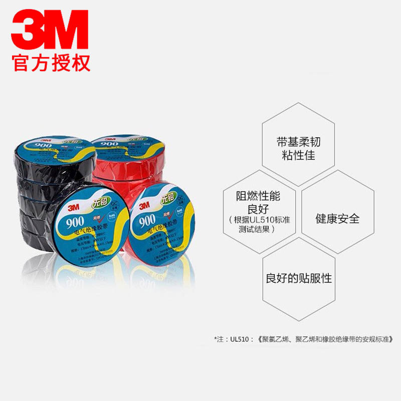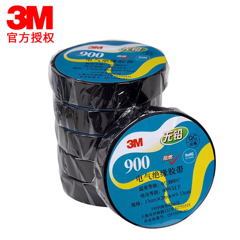 3M原装绝缘电工胶带通用防潮PVC电气无铅电线绝缘胶带阻燃胶带900