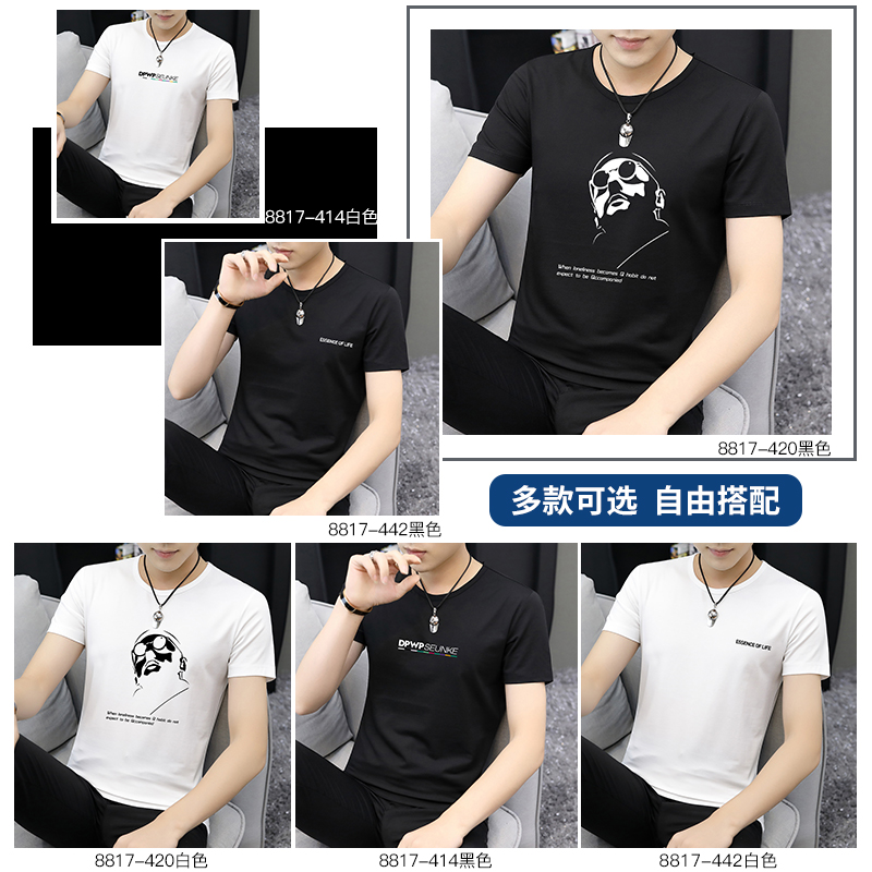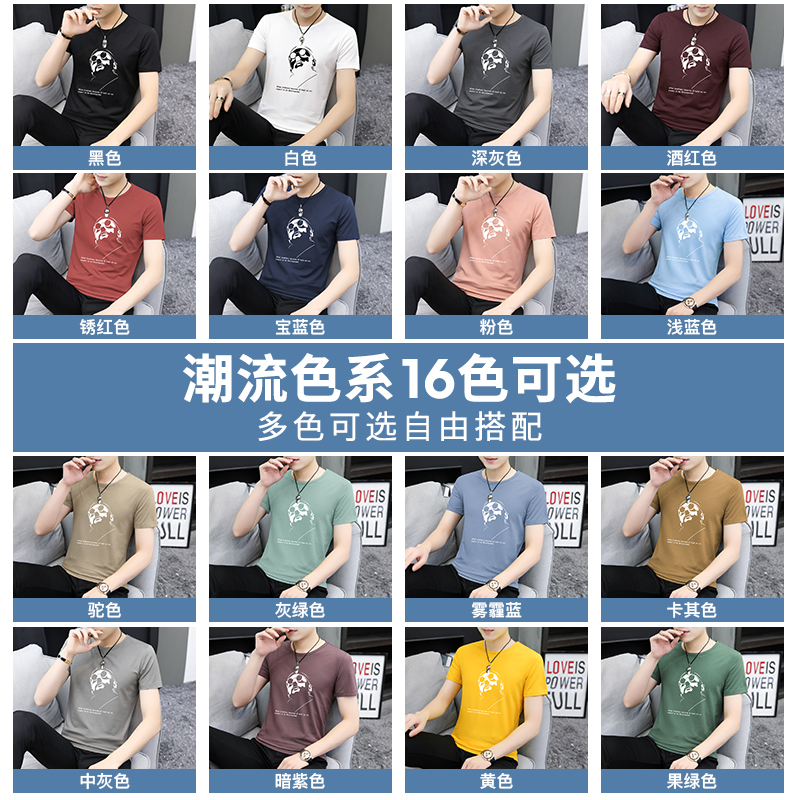 莫代尔短袖t恤男装潮流印花圆领上衣服夏季冰丝光棉速干凉感半袖