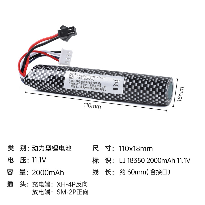 电动玩具枪11.1V18350锂电池斯泰迪6代锦明8/9M416小田宫XT30接口
