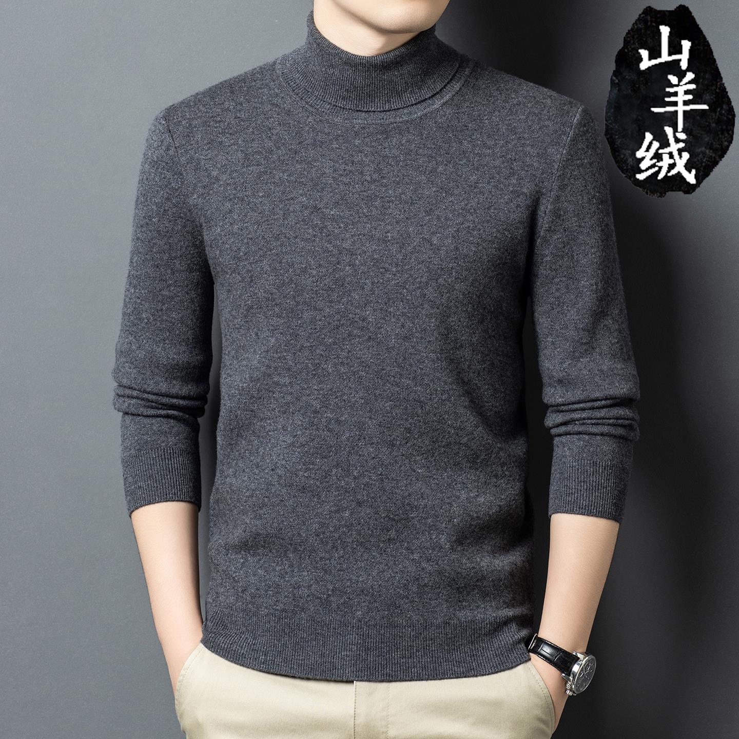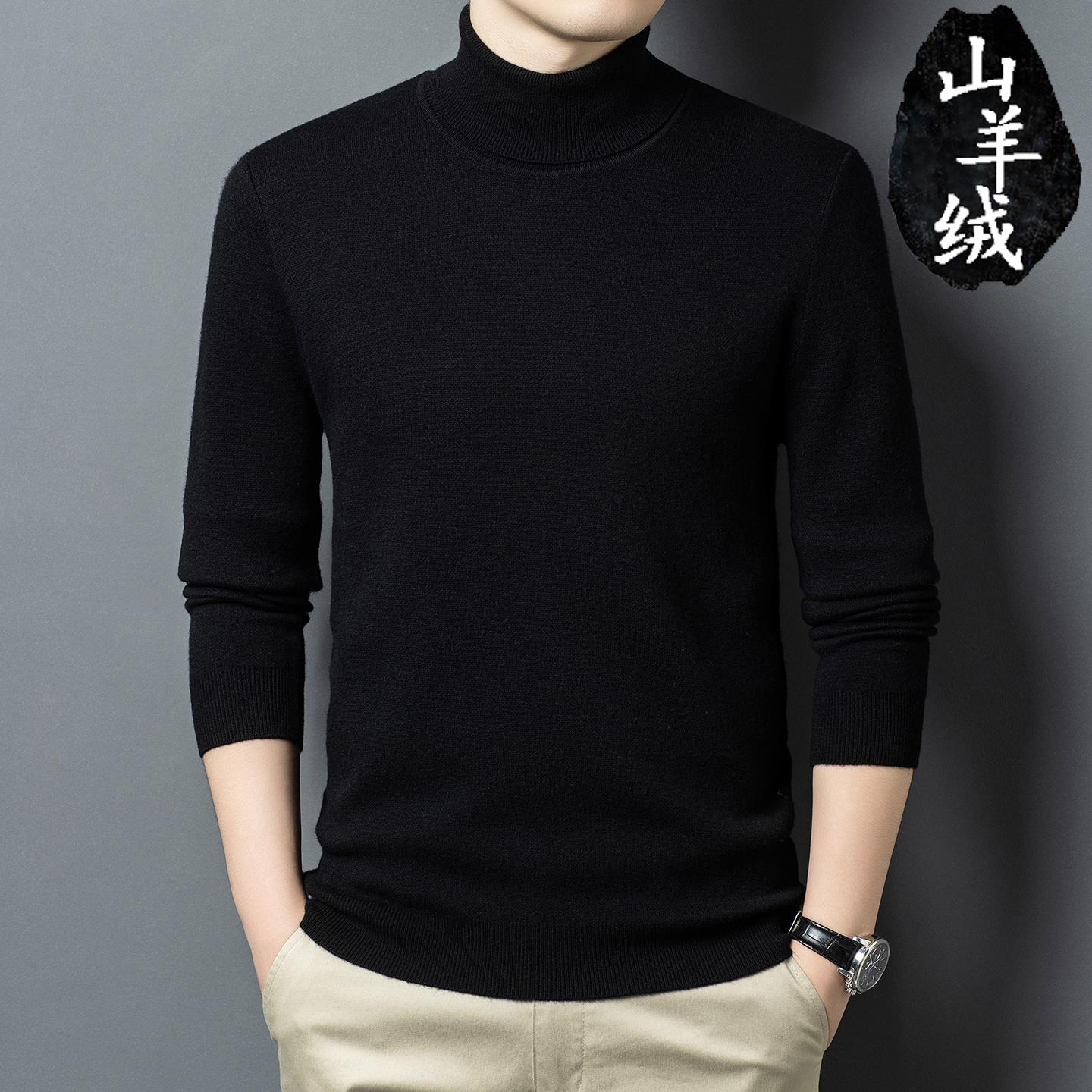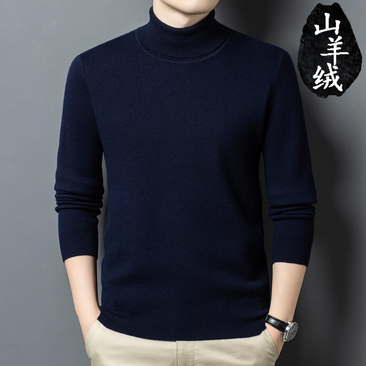 冬季可翻高领羊毛衫男加厚毛衣纯色中青年打底韩版抗起球羊绒衫
