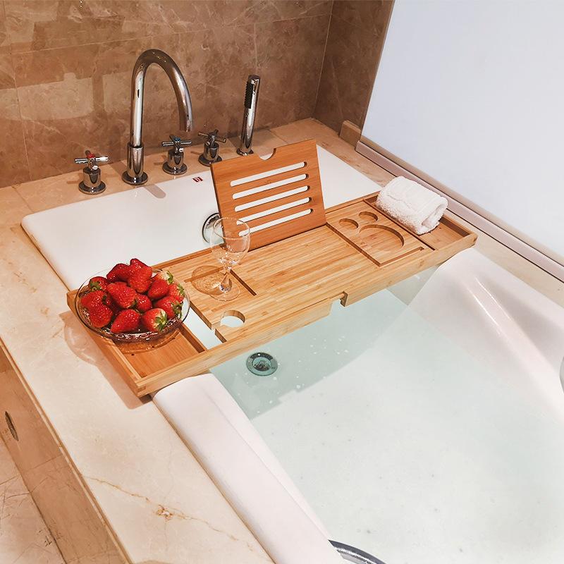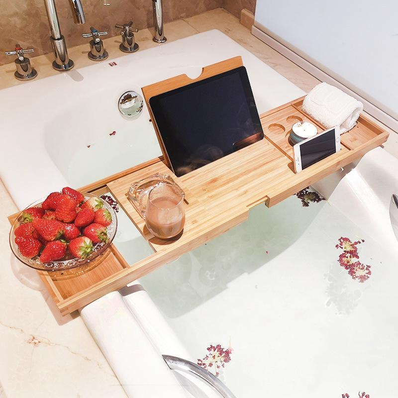 浴缸泡澡伸缩置物架架支架浴盆防滑手机欧式多卫生间功能浴桶浴室