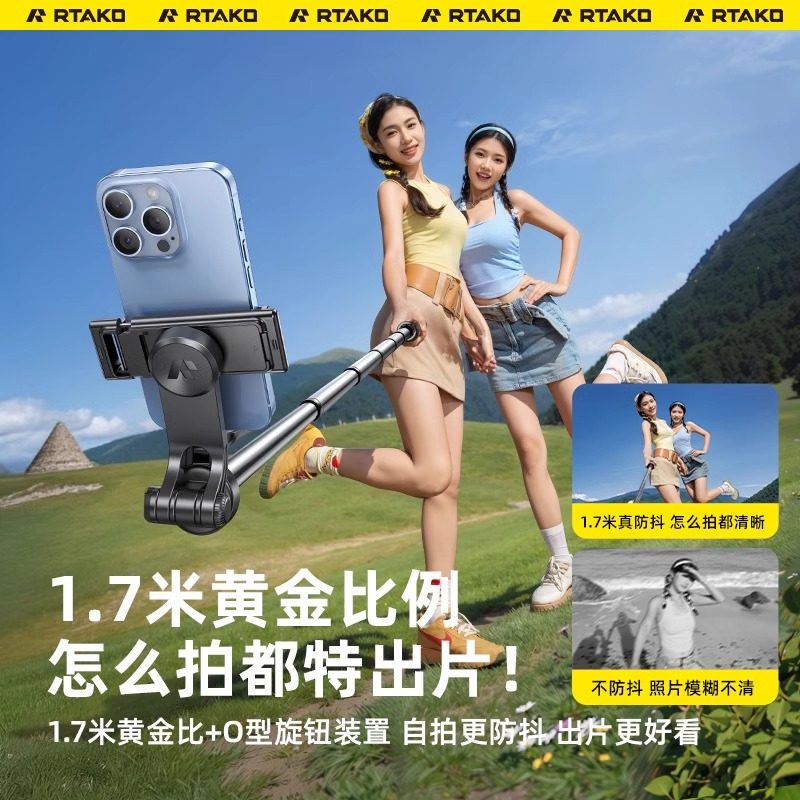 锐塔克自拍杆2025新款旅游便携落地三脚架手持防抖自拍杆直播拍摄