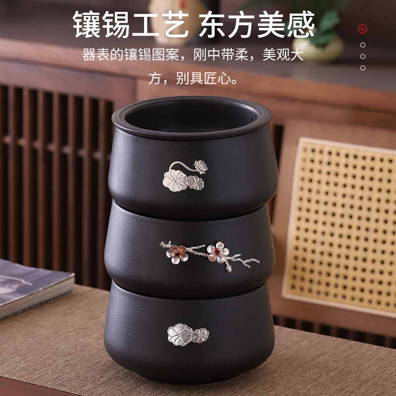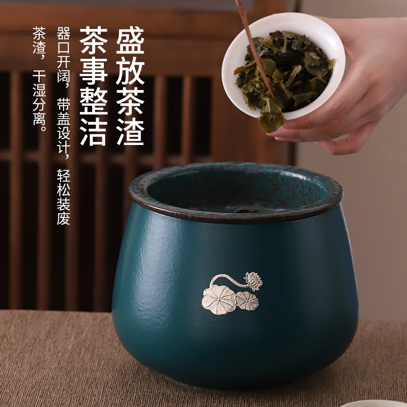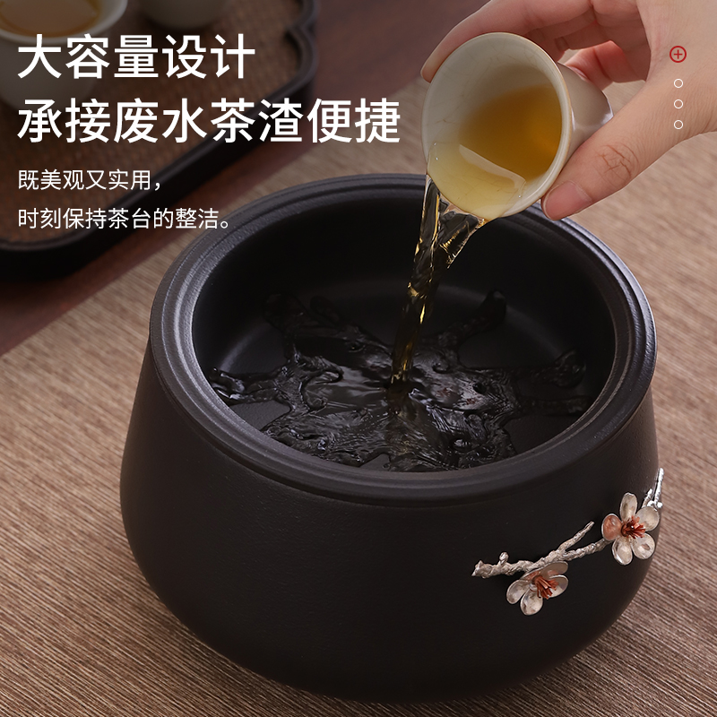 茶渣缸大号茶洗带盖黑陶水盂杯洗家用茶盆洗茶碗建水功夫茶具配件