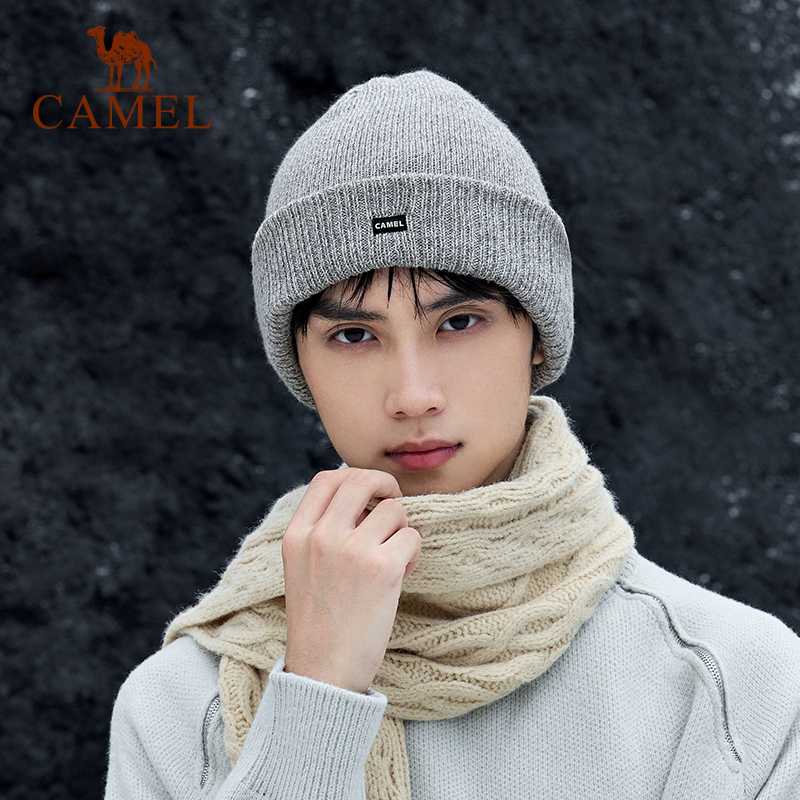 骆驼针织帽2025新款冬季保暖防风冷帽男士大头围黑色百搭毛线帽子