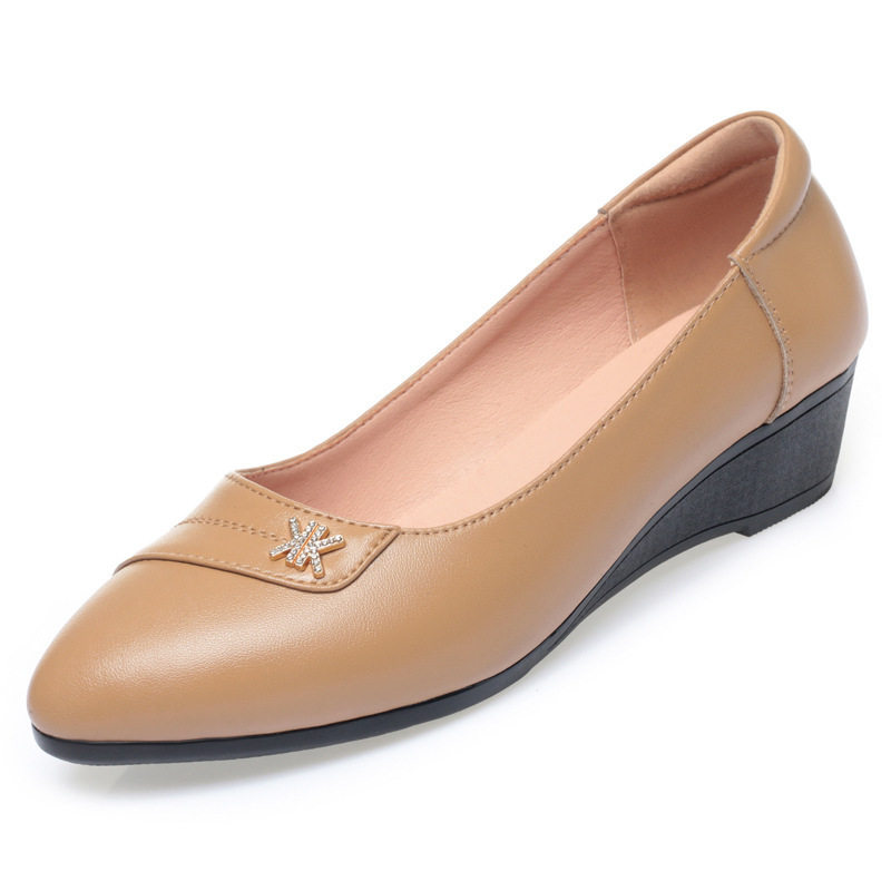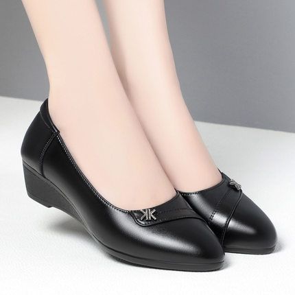 女士皮鞋真皮平底中年妈妈坡跟单鞋中老年舒适不累脚女鞋软底轻便