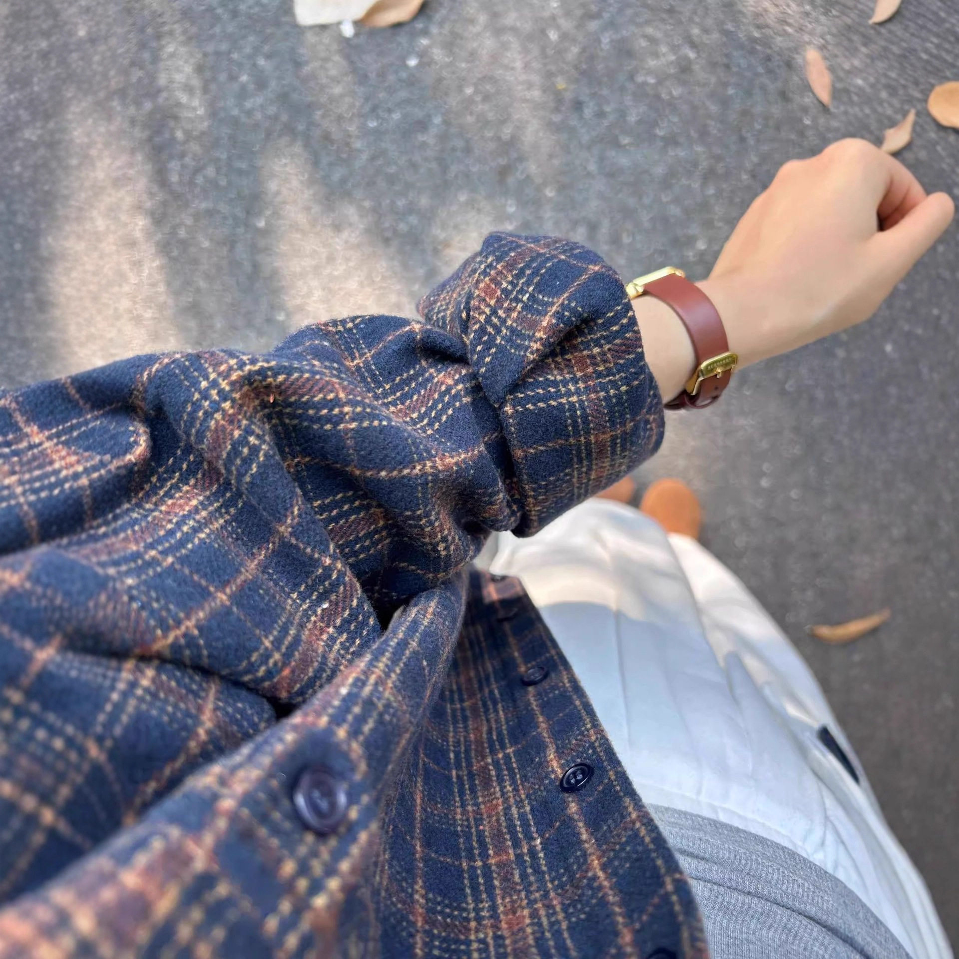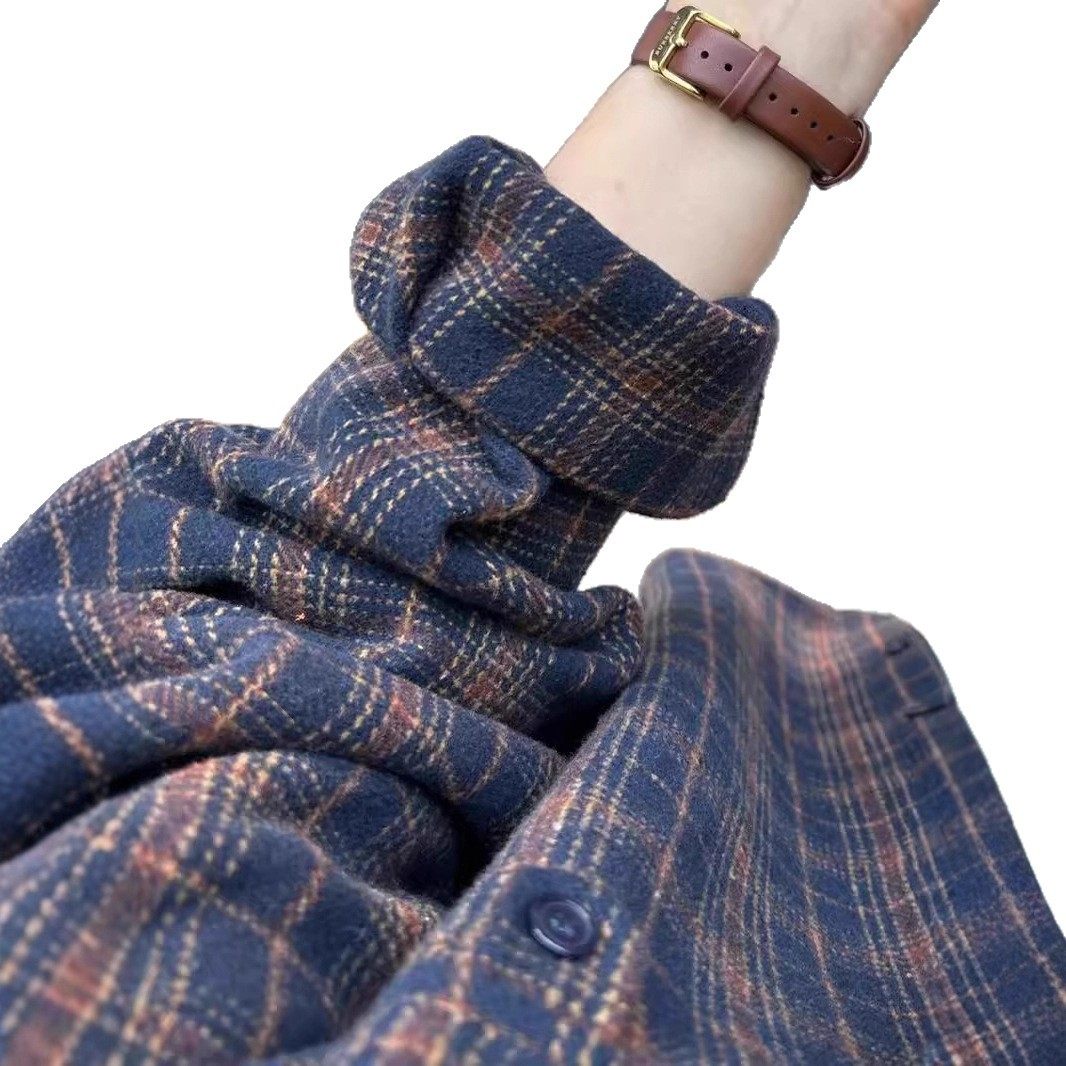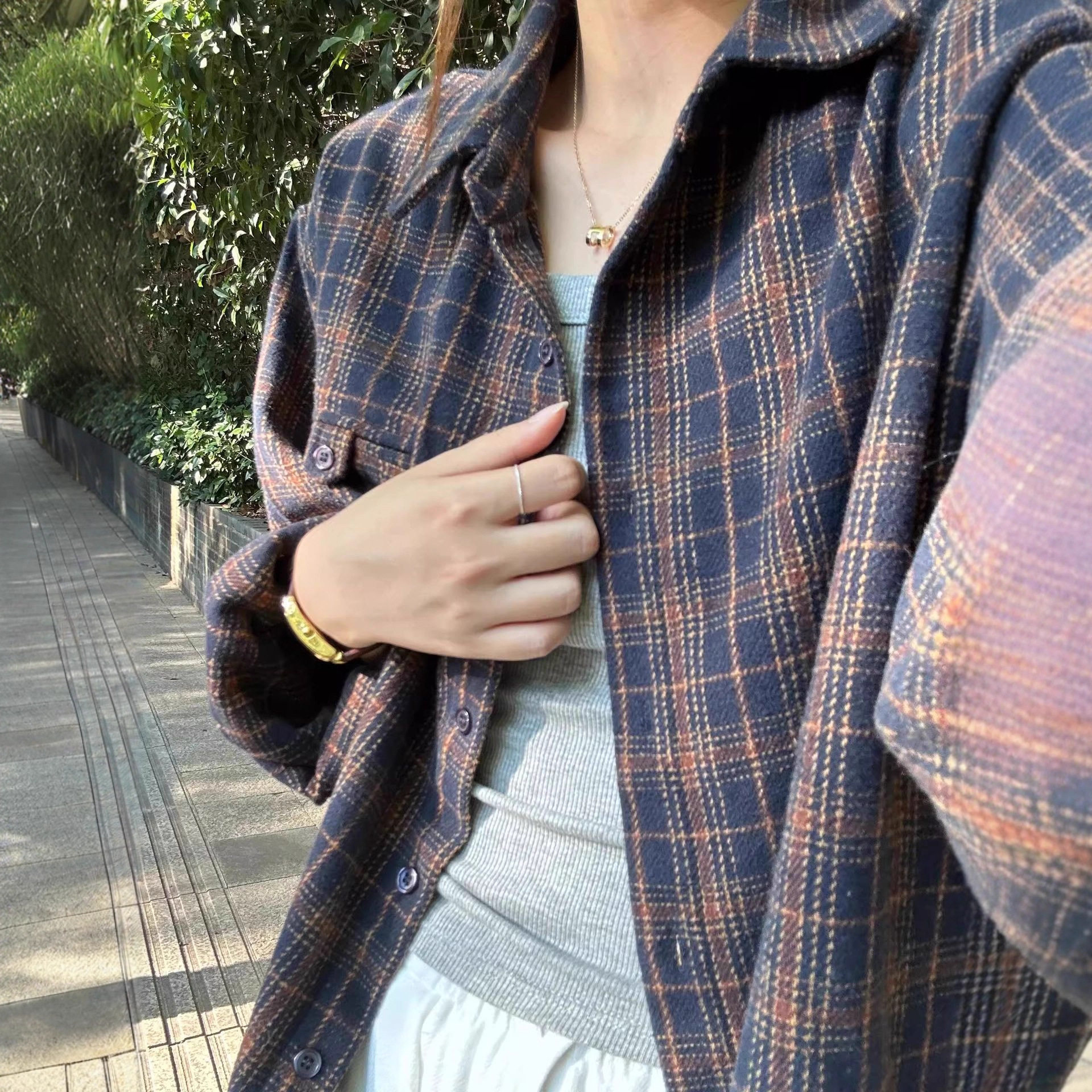 昌秀 磨毛棉格子衬衫2025新款女复古高级感衬衣叠穿秋冬薄外套