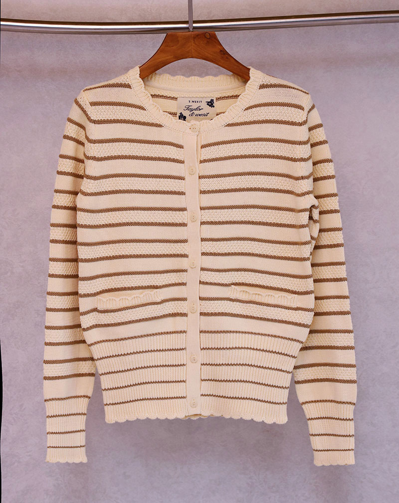 特价 2023秋冬季新款女士加厚条纹毛衣修身针织小外套上衣女开衫