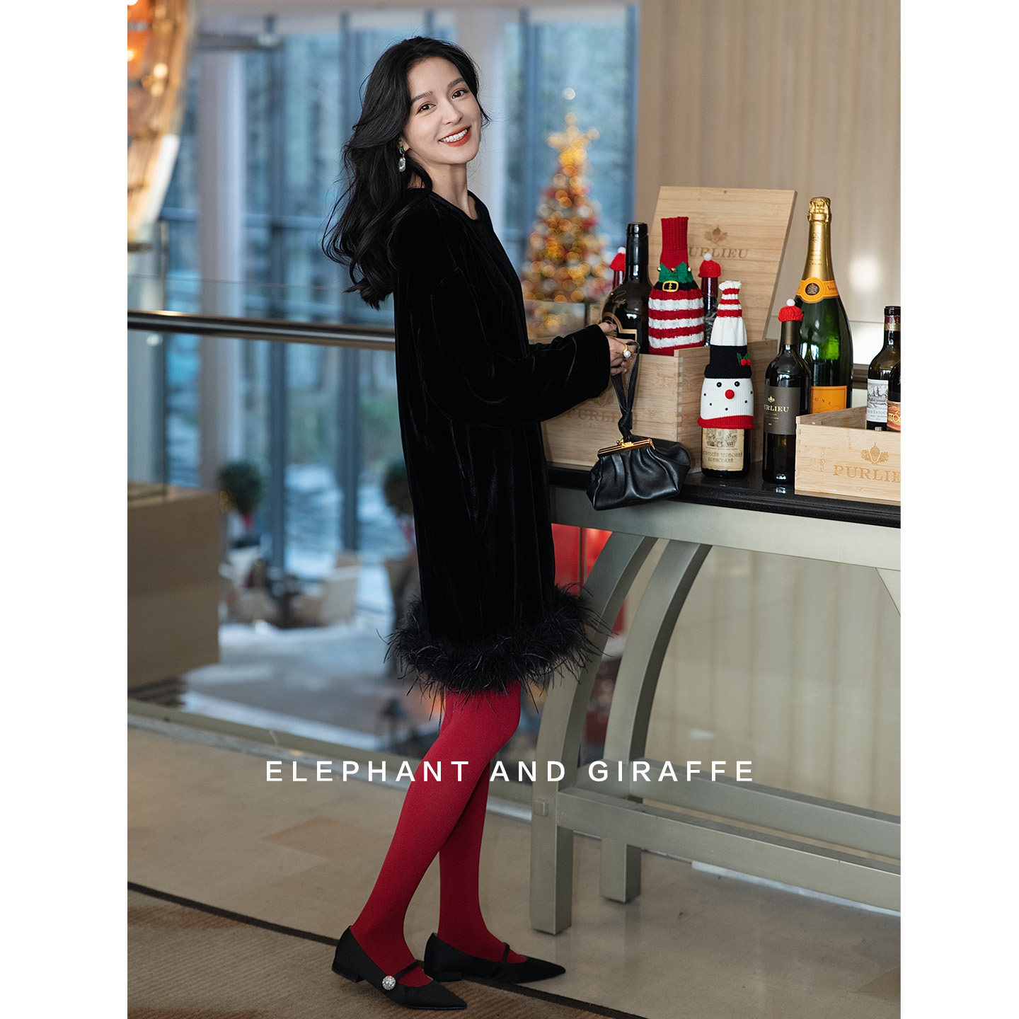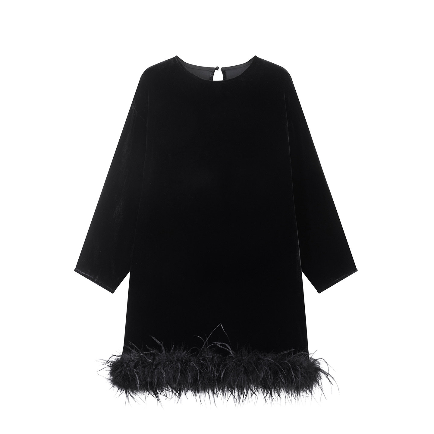 大象和长颈鹿 黑天鹅序曲鸵鸟毛重磅真丝丝绒连衣裙礼服裙 512207