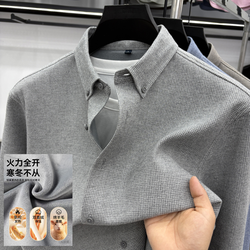 保罗保暖衬衫男士长袖25冬季加绒加厚格子衬衣男装中年爸爸装上衣