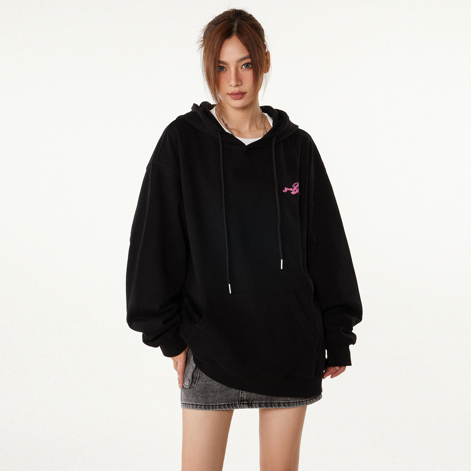 Beikastudios黑色连帽卫衣女春秋美式复古字母24秋宽松慵懒风外套