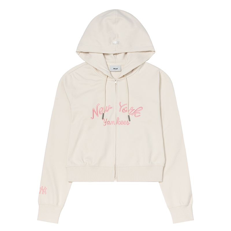 国内现货MLB女款25新款NY字母短款连帽卫衣运动夹克外套3FTRB0854