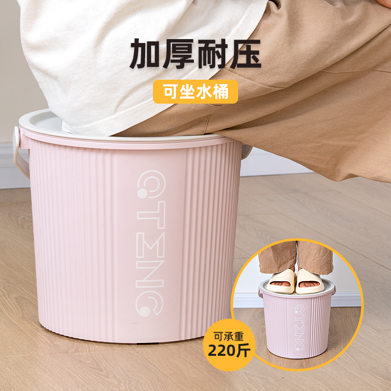 日本进口带盖水桶家用加厚耐热可坐洗澡手提桶塑料盆学生宿舍套装