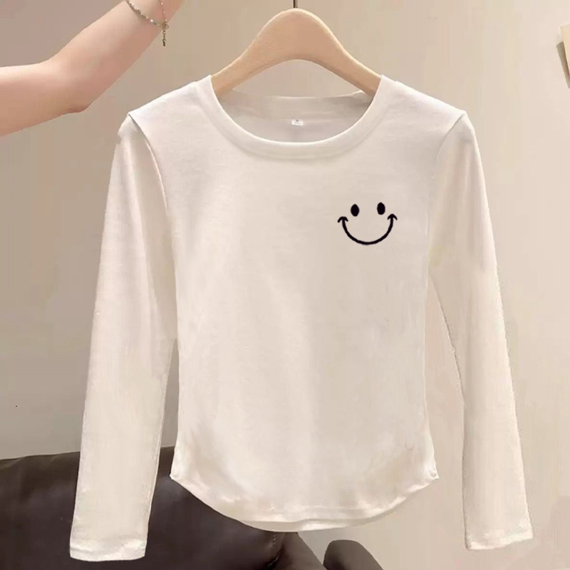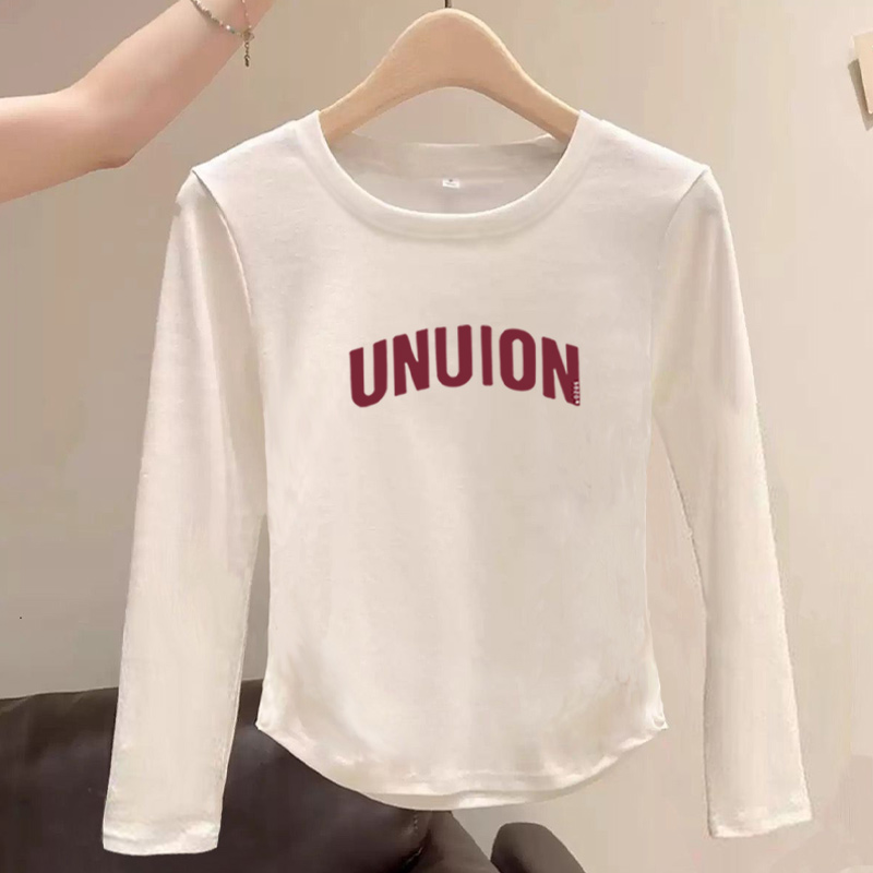 螺纹棉长袖T恤女春秋季设计感弧形下摆修身百搭打底体恤上衣女棉