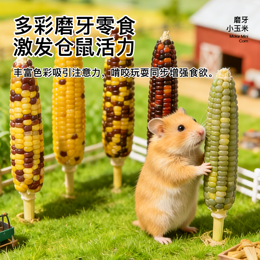 青松宠仓鼠零食磨牙小玉米金丝熊花枝鼠彩虹玉米磨牙玩具造景装饰