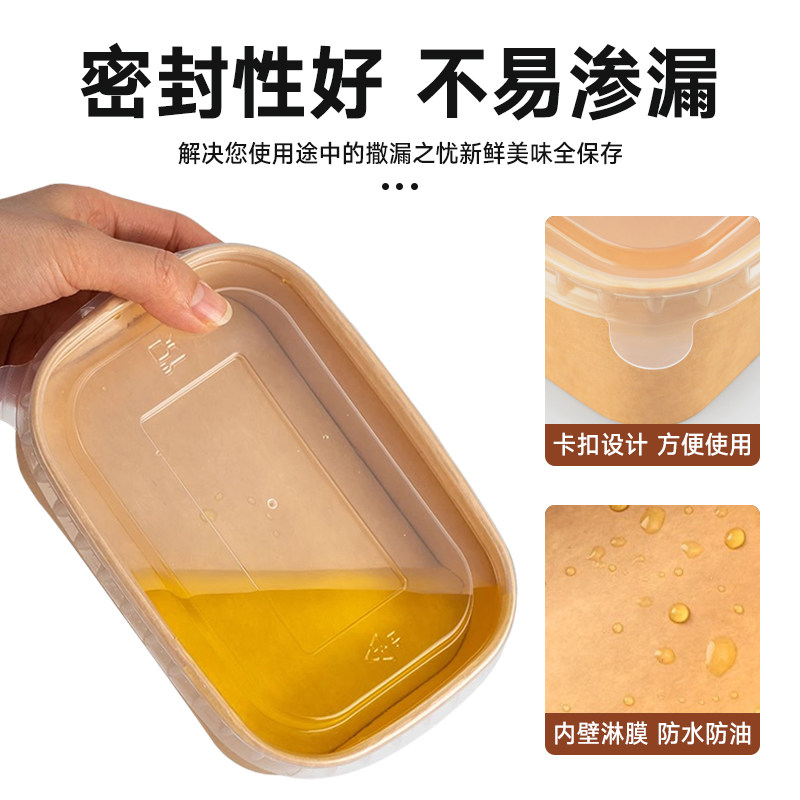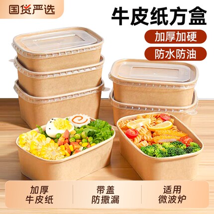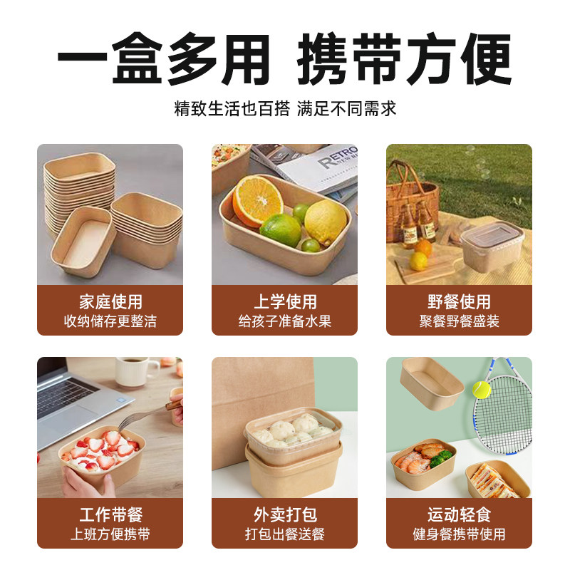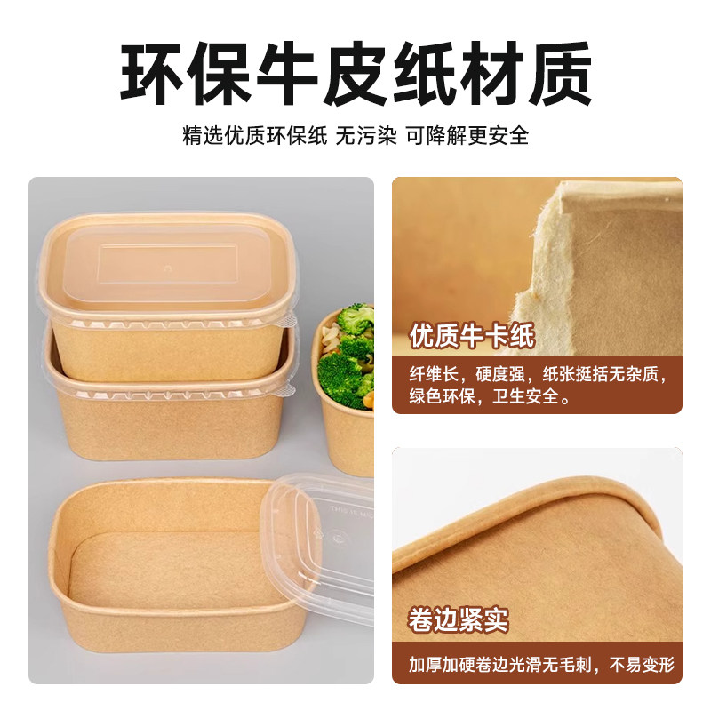 一次性牛皮纸餐盒长方形加厚野餐水果沙拉轻食便当快餐外卖打包盒