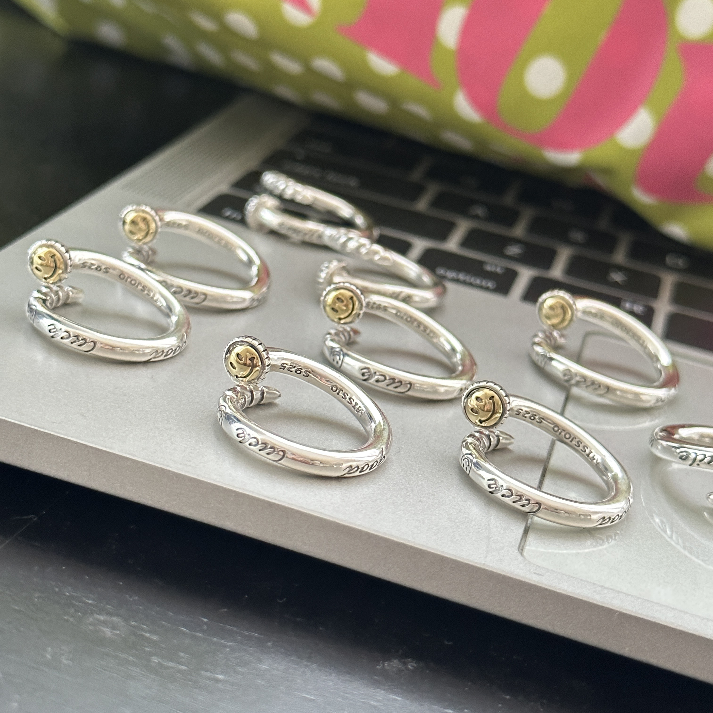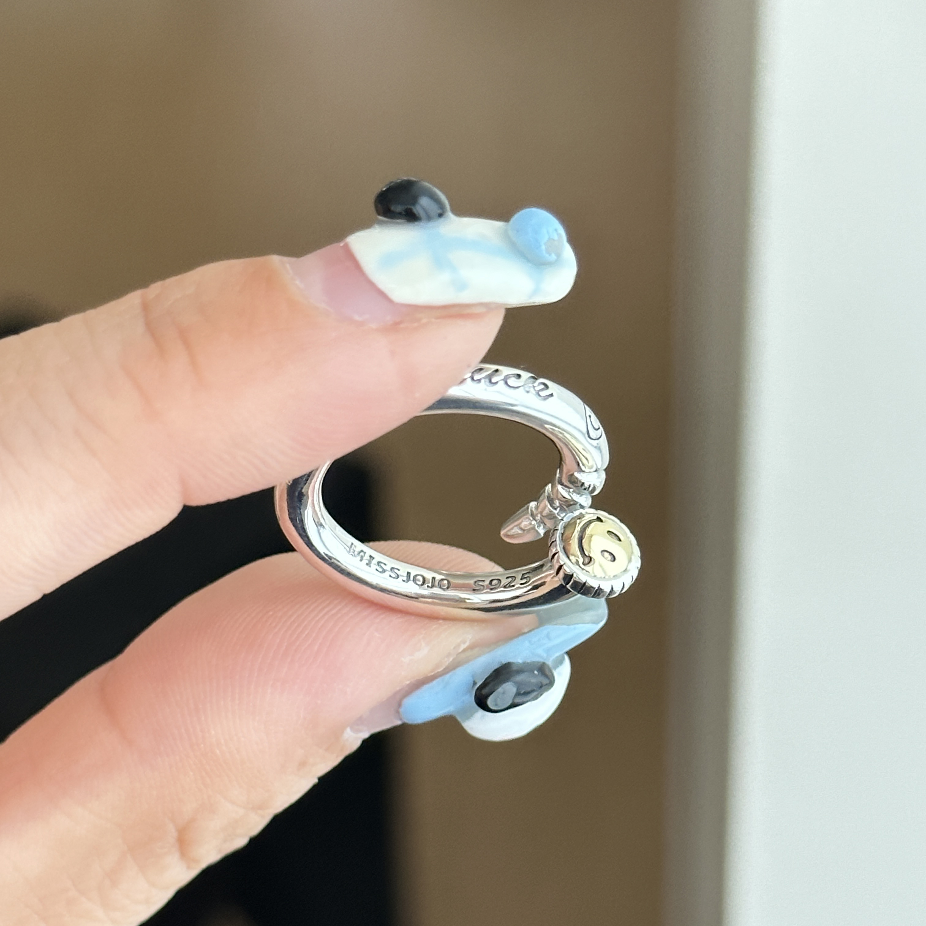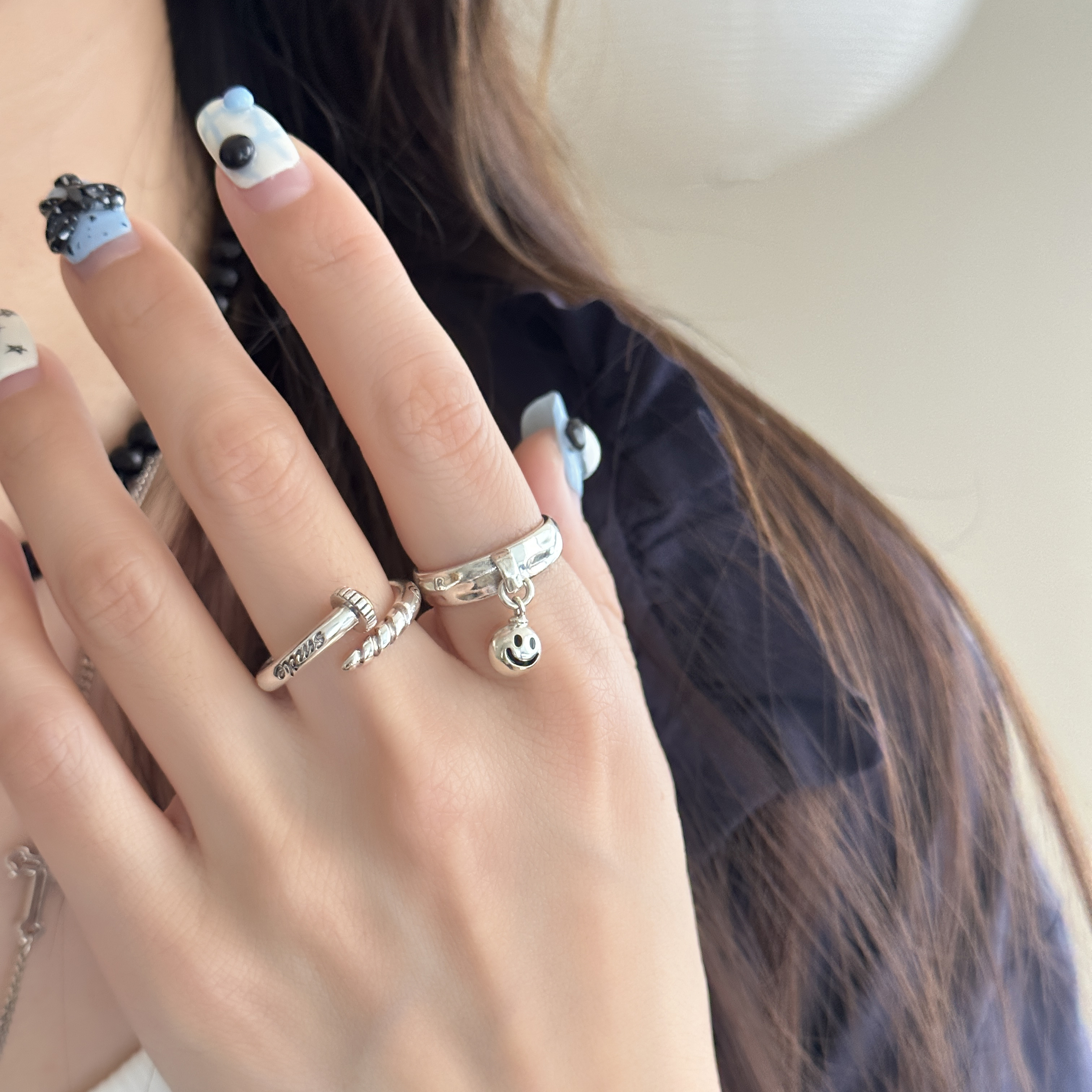 MISS JOJO原创设计简约百搭气质女钉子笑脸S925纯银戒指