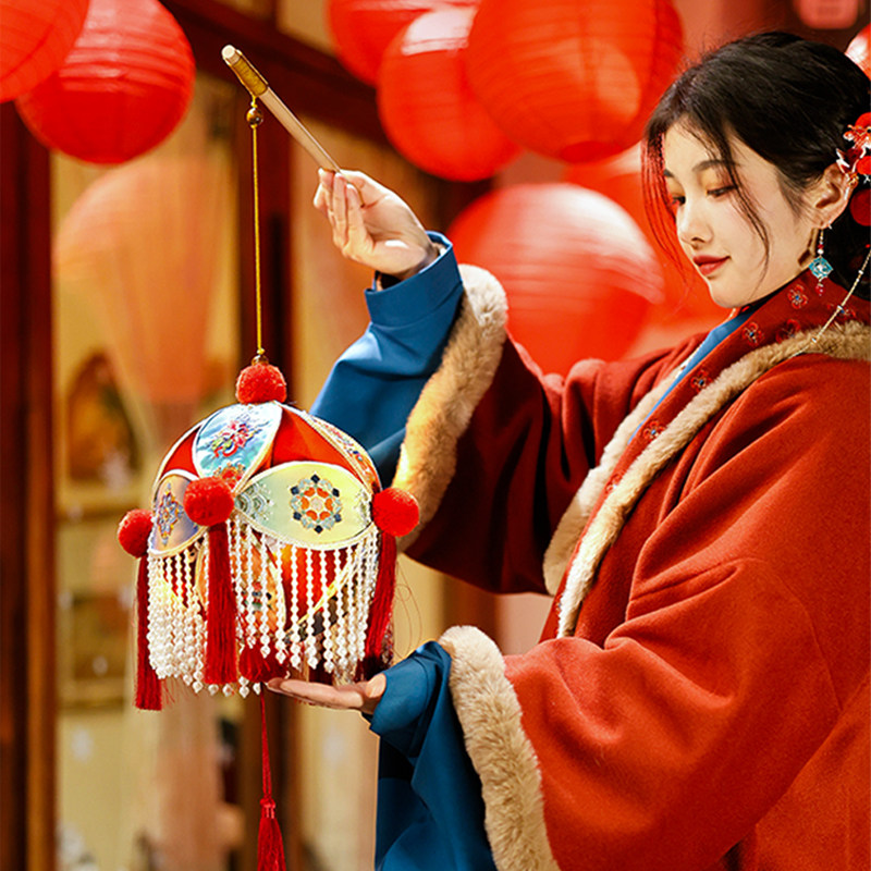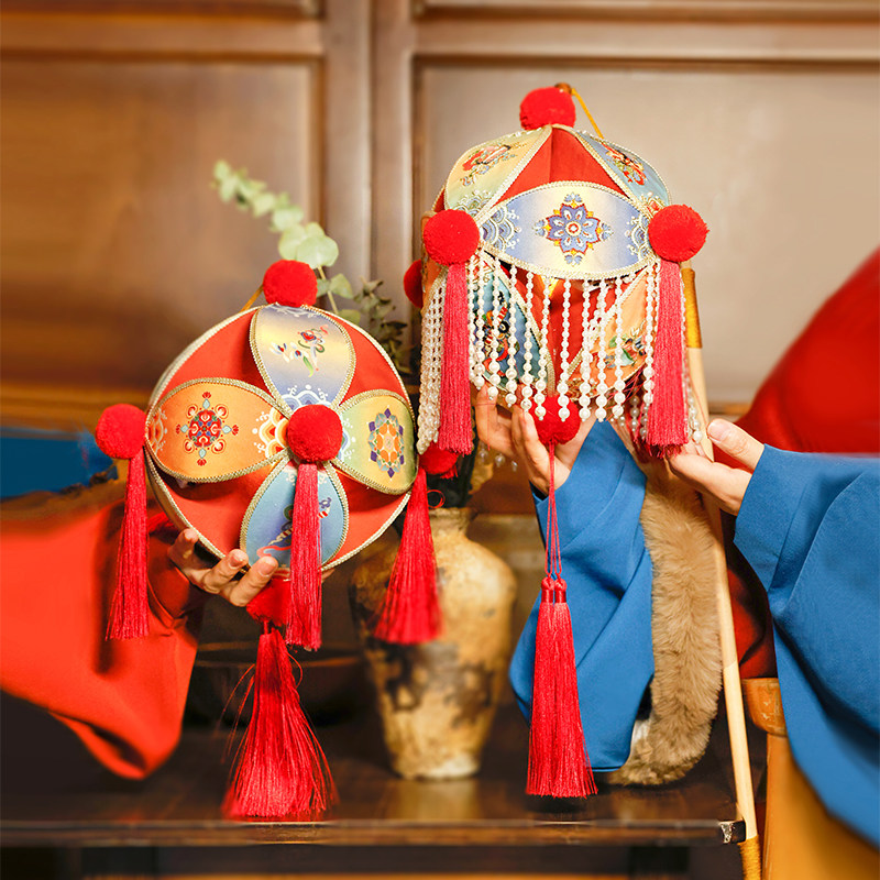 哈尼手工古风滚灯材料包diy国潮新中式传统绣球新年小竹编布灯笼