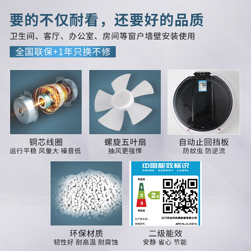 金羚排气扇卫生间6寸抽油烟风扇窗式厨房家用强力窗式换气扇小型