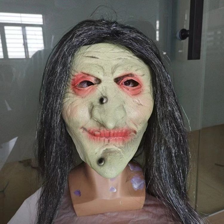 万圣节外贸银发绿脸巫婆乳胶面具节假日氛围整蛊头套厂家直销批发