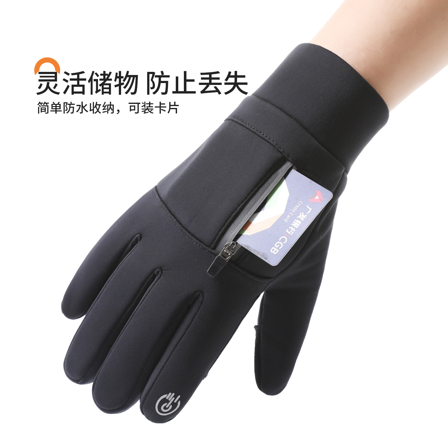 户外秋冬季男女款运动手套手背拉链防滑保暖触屏防风骑行手套