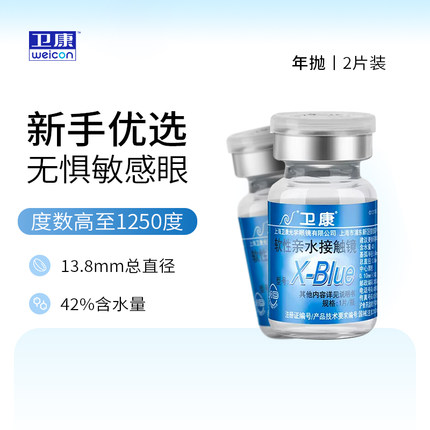 2片装卫康x-blue隐形近视眼镜年抛高度数透明旗舰店官网正品1片盒
