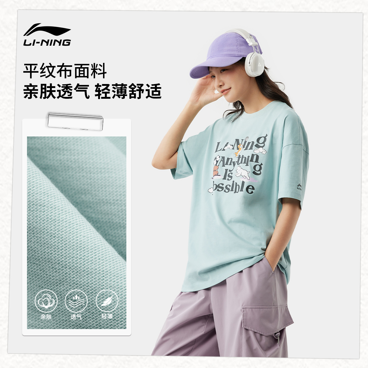 李宁短袖女士夏季2025新款萌宠女装圆领半袖休闲印花上衣运动T恤
