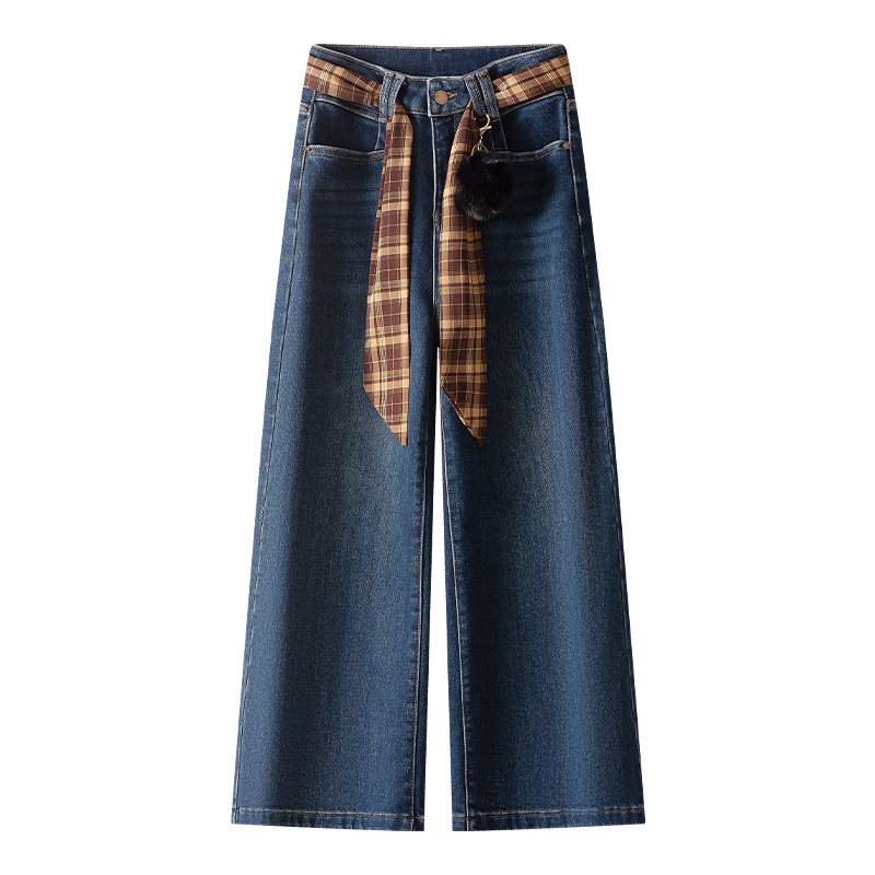 加绒九分牛仔裤宽松高腰阔腿裤