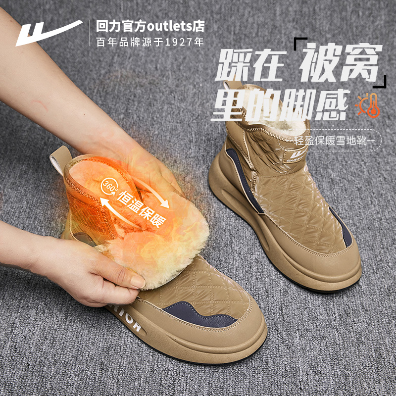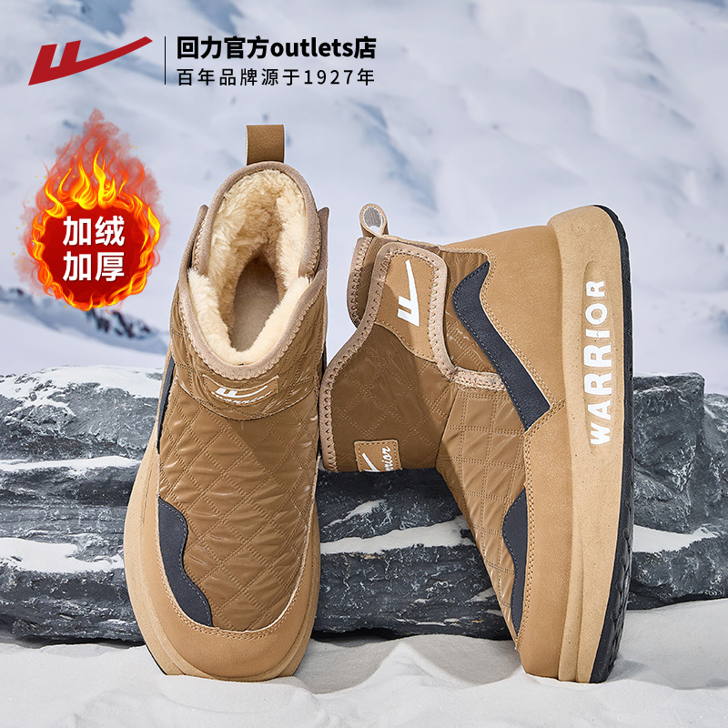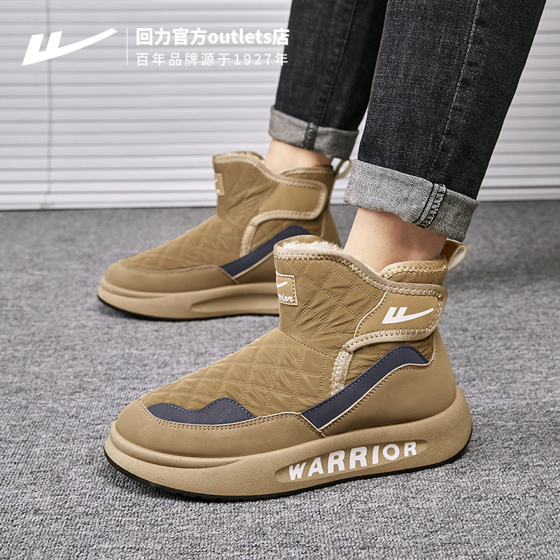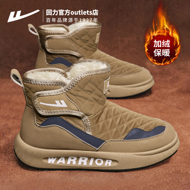 回力雪地靴男秋冬2024新款高帮加绒鞋子男士面包鞋东北保暖大棉鞋