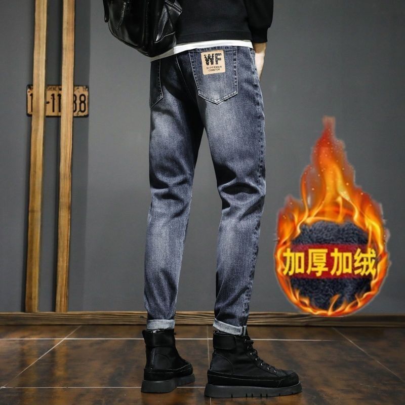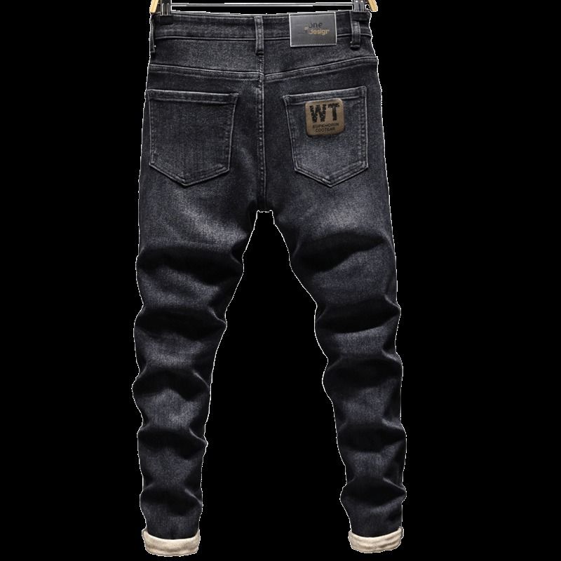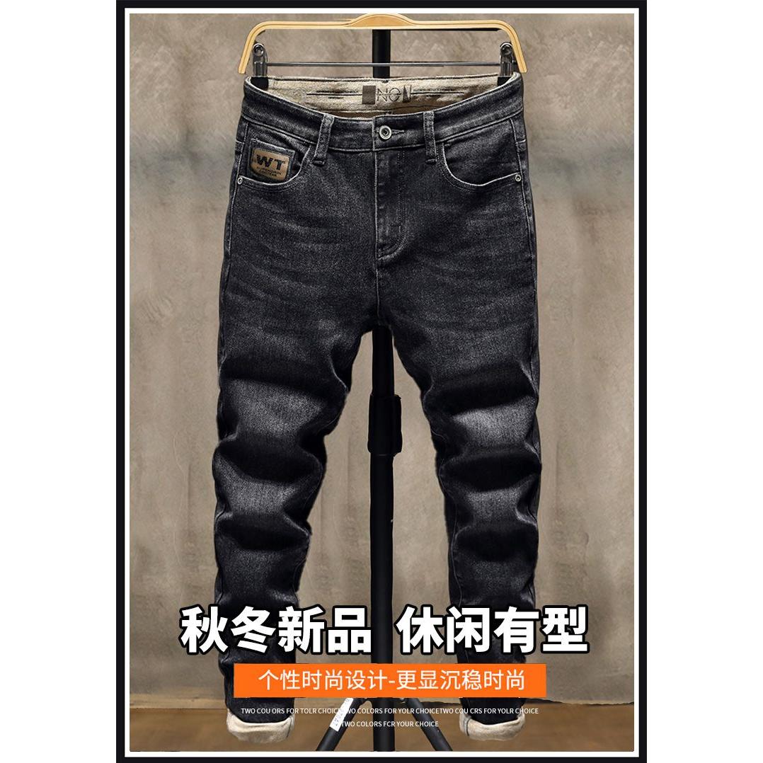 牛仔裤男士修身小脚春秋款松紧腰弹力2024新款直筒休闲长裤子男款