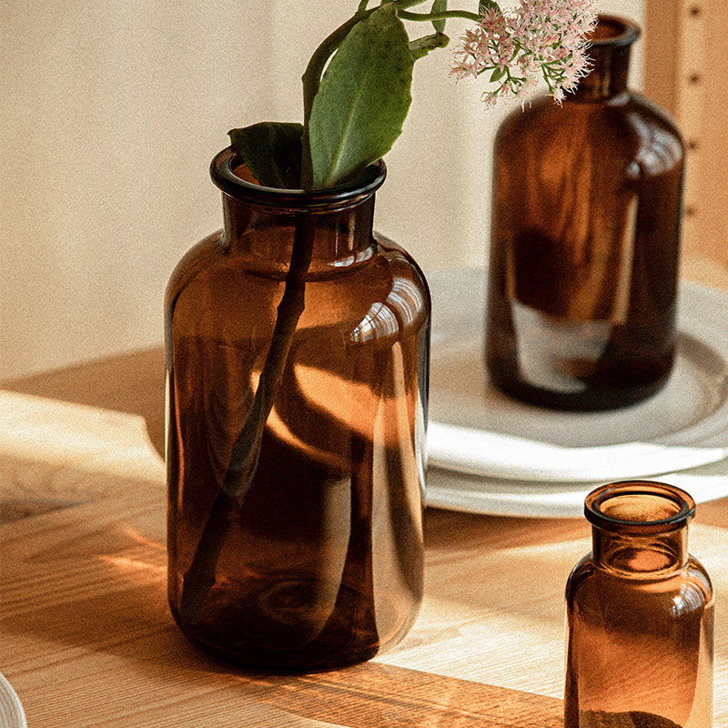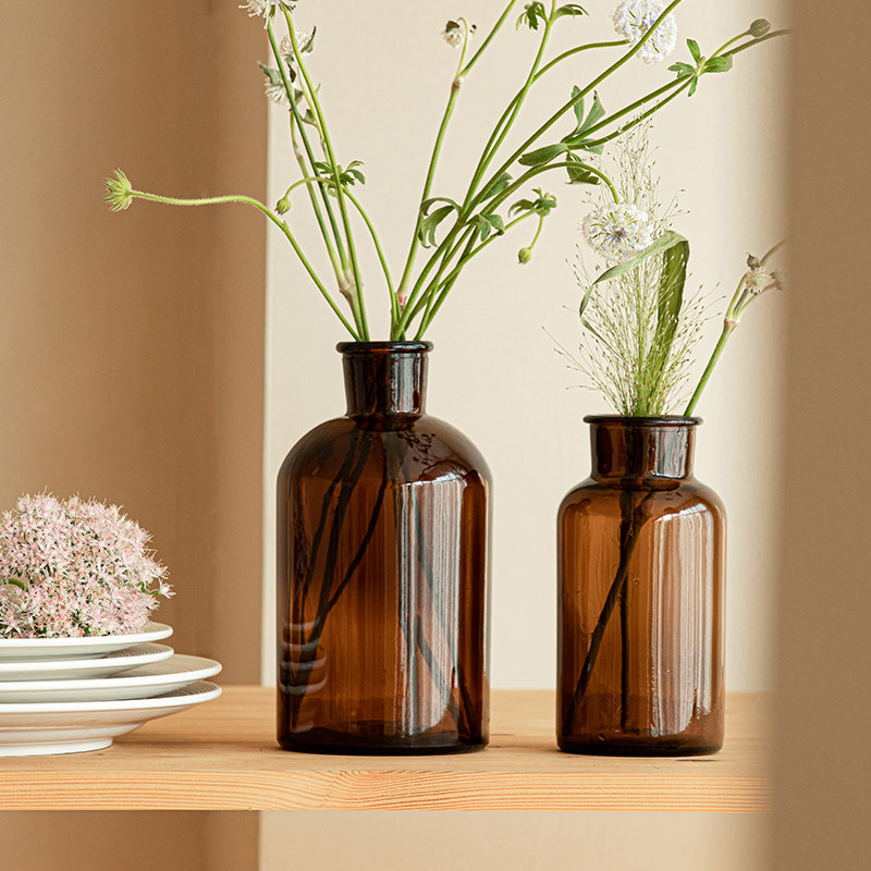 北欧ins网红复古茶色玻璃花瓶棕色透明插花水养水培鲜花花器摆件