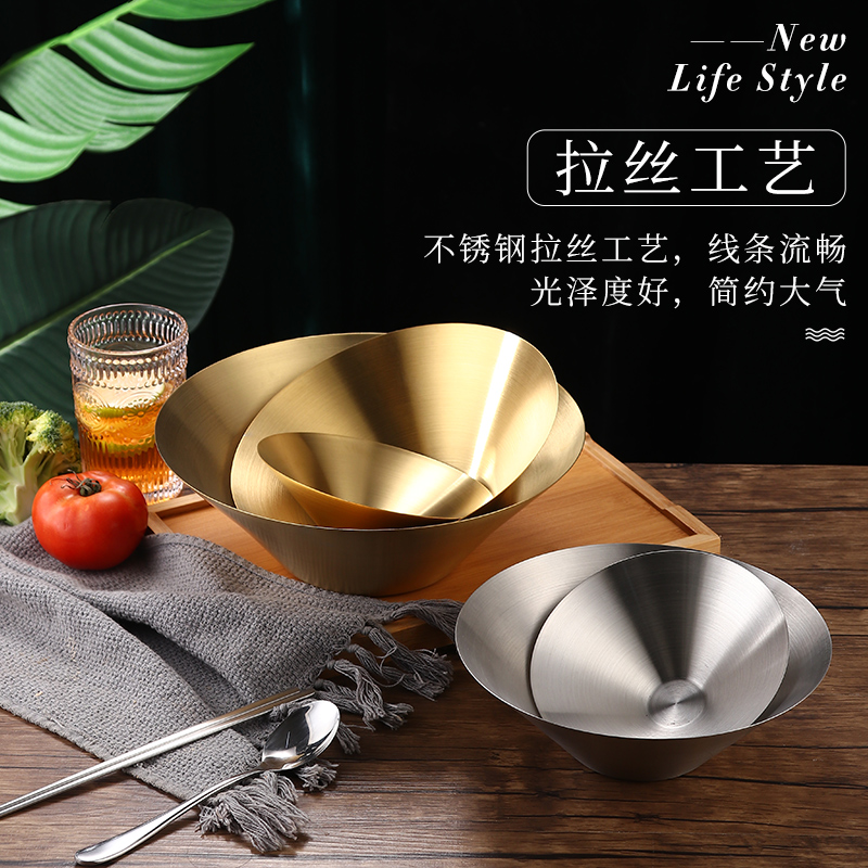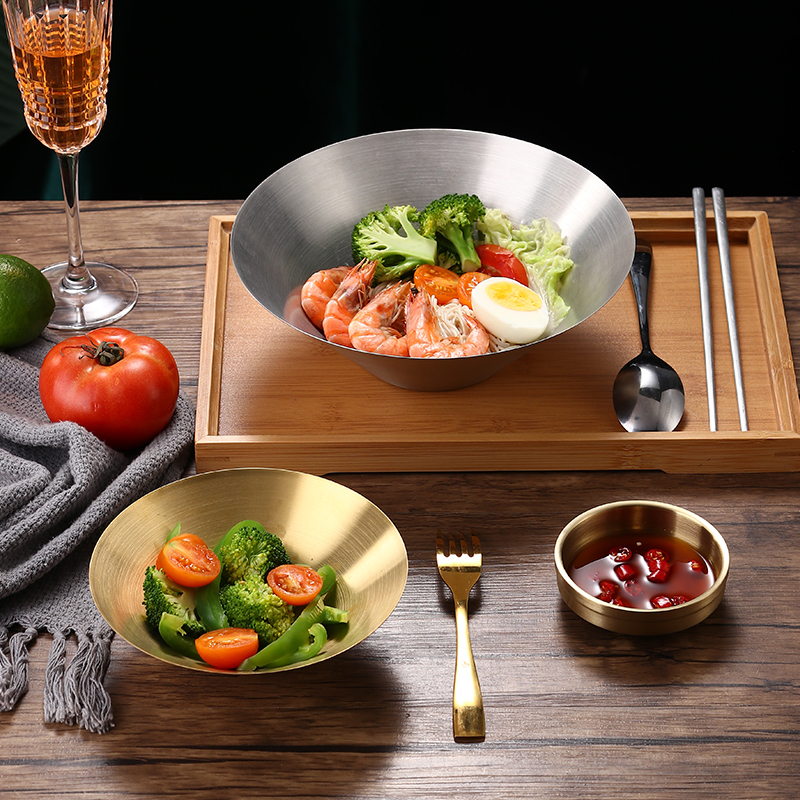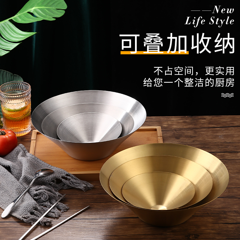 日式不锈钢拉面碗韩国意面碗金色沙拉碗泡面汤碗冷面碗拌面碗麻辣