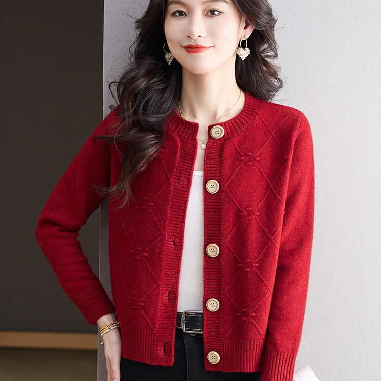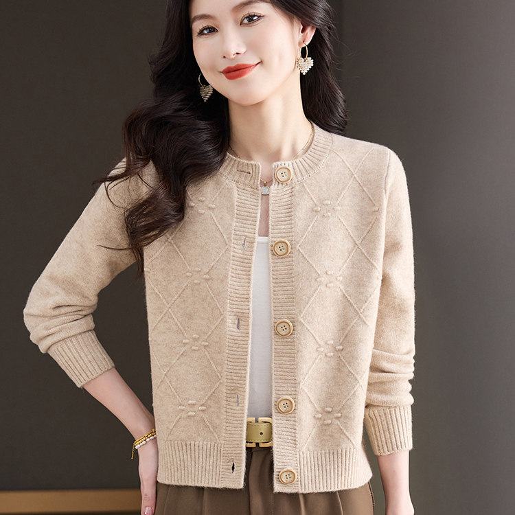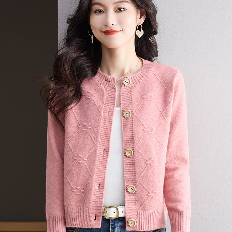 短款圆领小衫外套女冬新款小个子针织开衫上衣慵懒羊绒毛衣小外搭