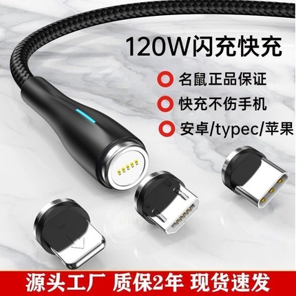 磁吸充电线适配华为小米OPPO苹果Type-c安卓vivo手机数据线三合一type-c吸铁石一拖三车载编织传输自动闪充