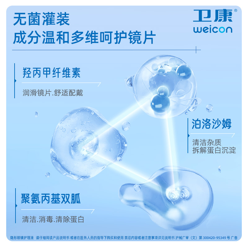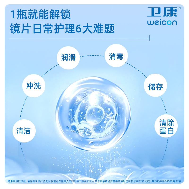 卫康奕视隐形眼镜除蛋白护理液洗多规格500+125ml美瞳杀菌护理aj