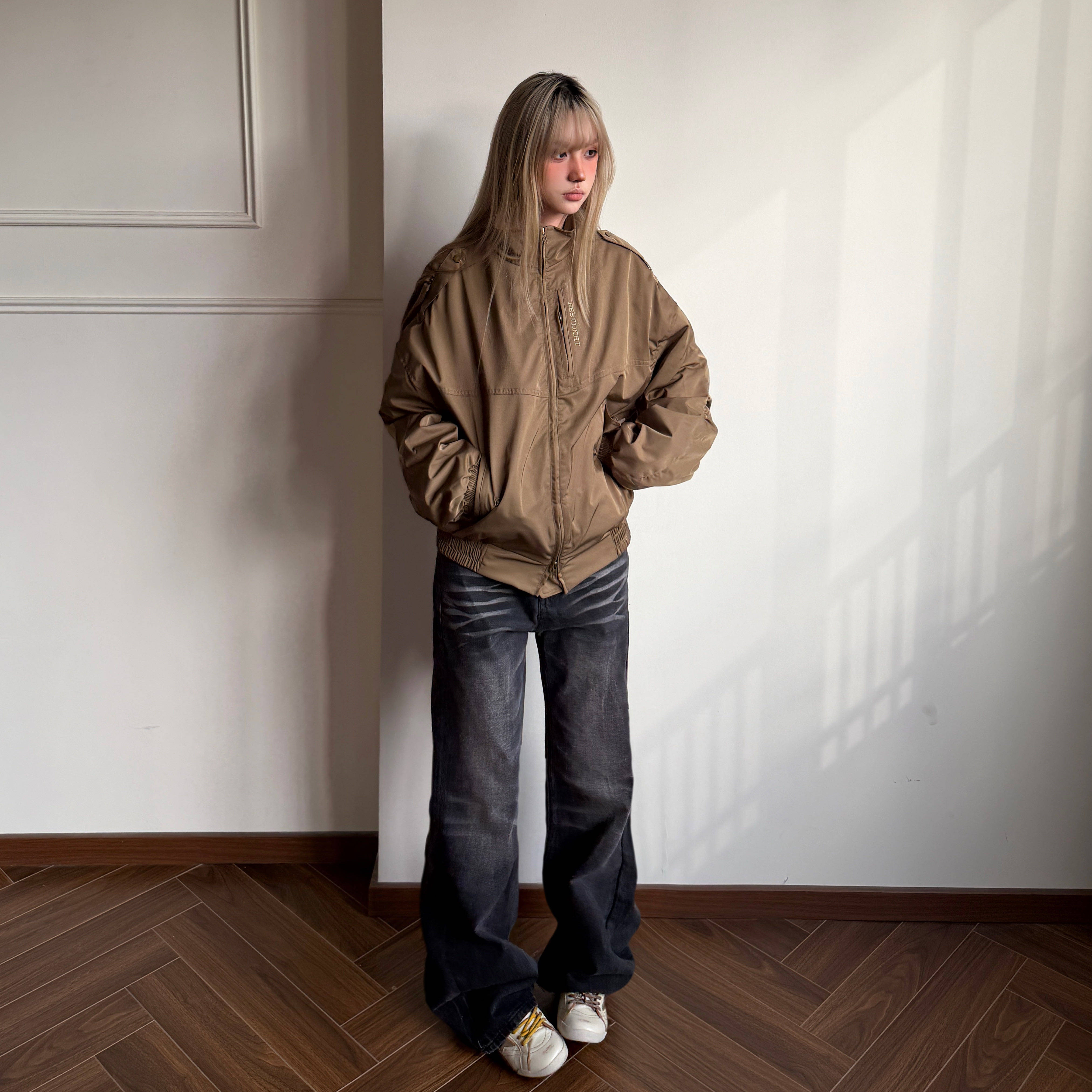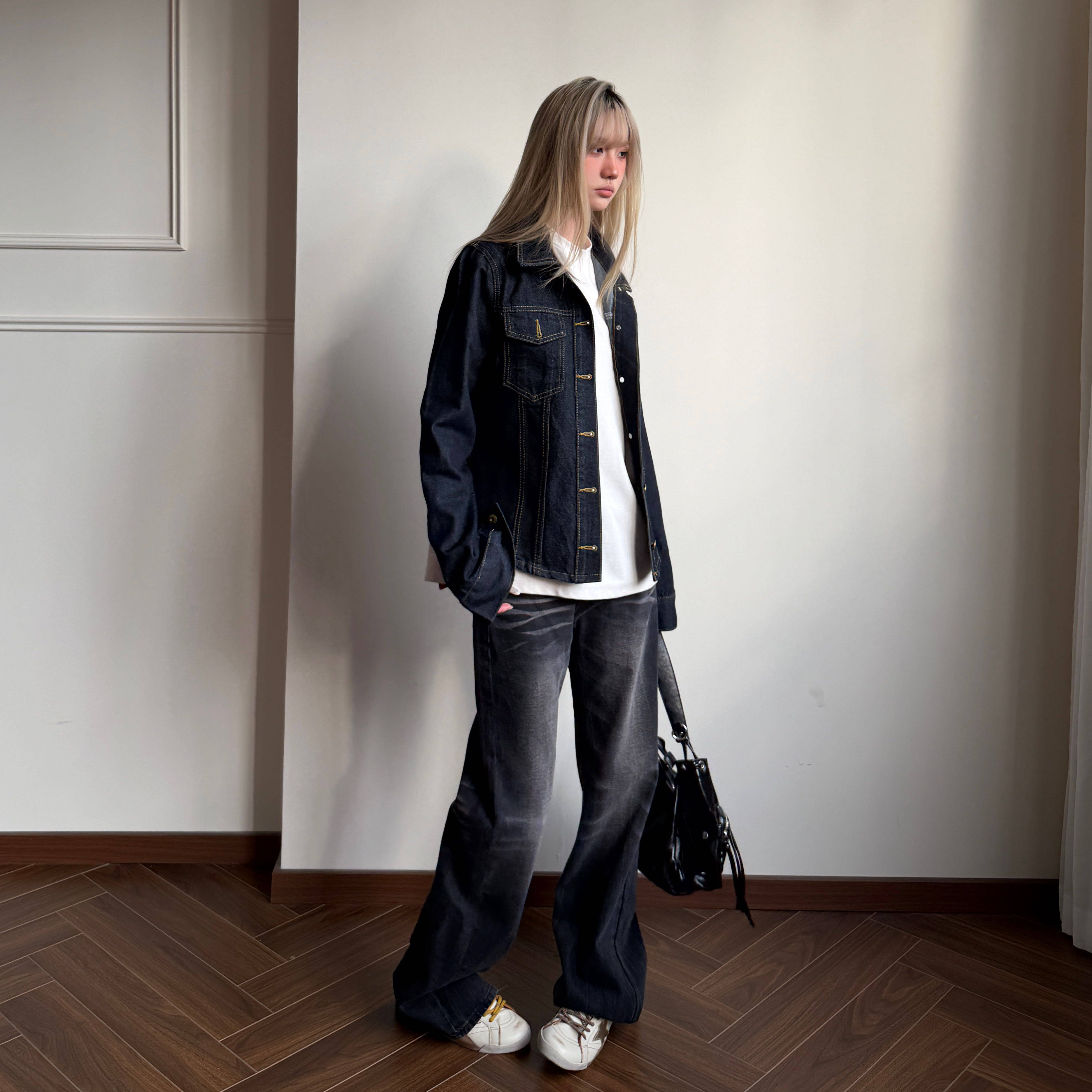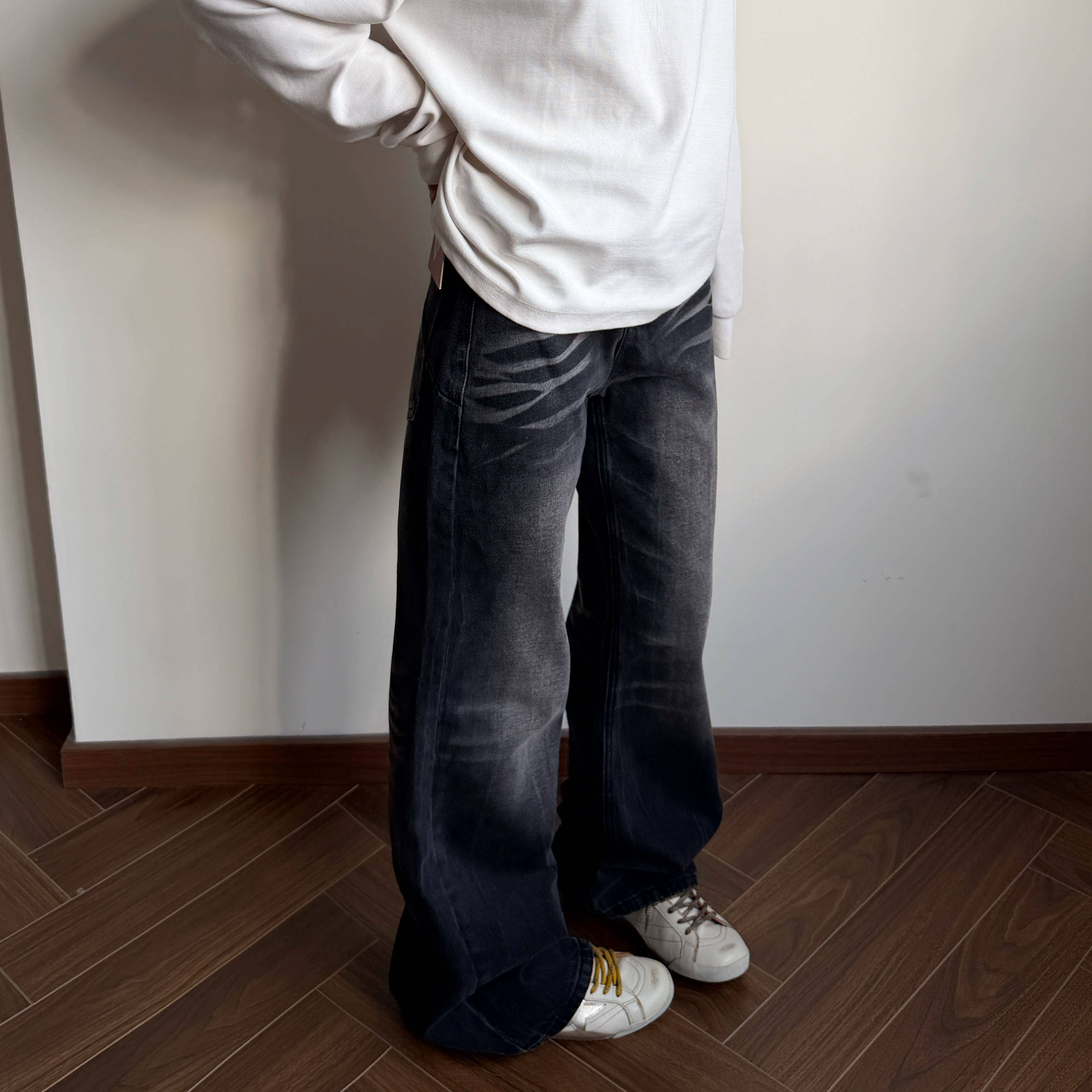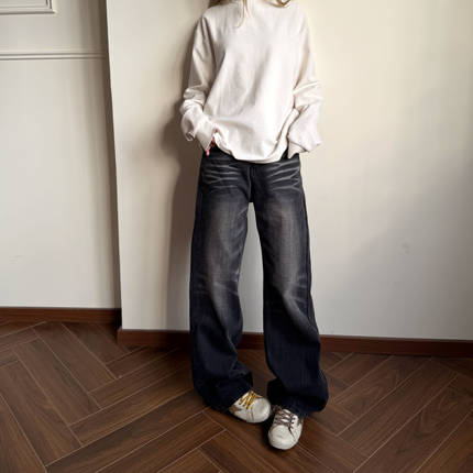 美式复古cleanfit水洗微喇牛仔裤