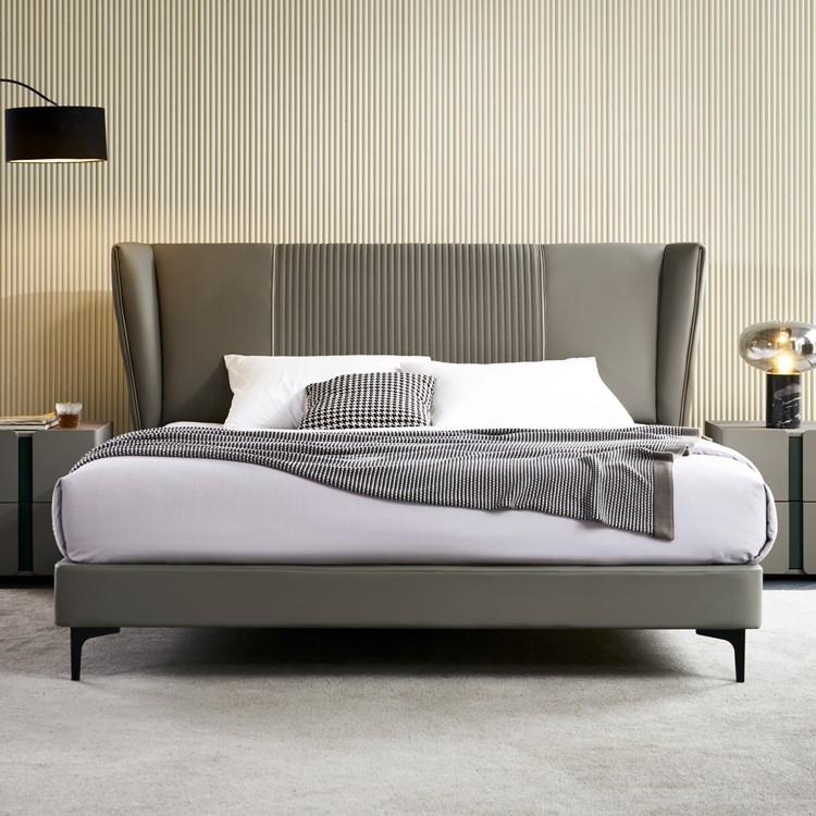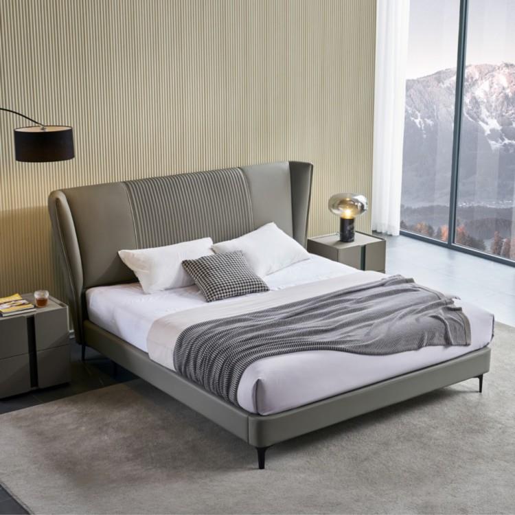意式极简真皮床现代简约北欧轻奢主卧室双人1.8米婚庆大床布艺床