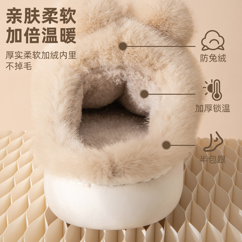 可爱毛毛绒厚底防滑保暖棉拖鞋女