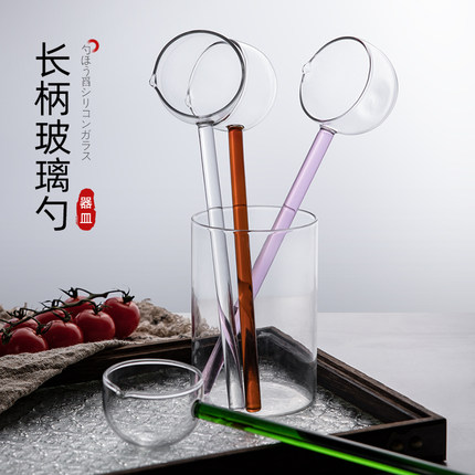 玻璃勺子长柄高硼硅耐高温高颜值透明厨房专用调料泼油勺咖啡汤勺