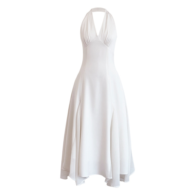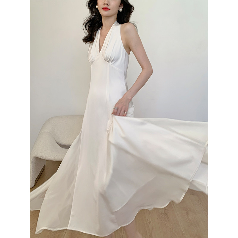 签儿 白月女神法式缎面v领挂脖露背包臀鱼尾订婚连衣裙女领证长裙