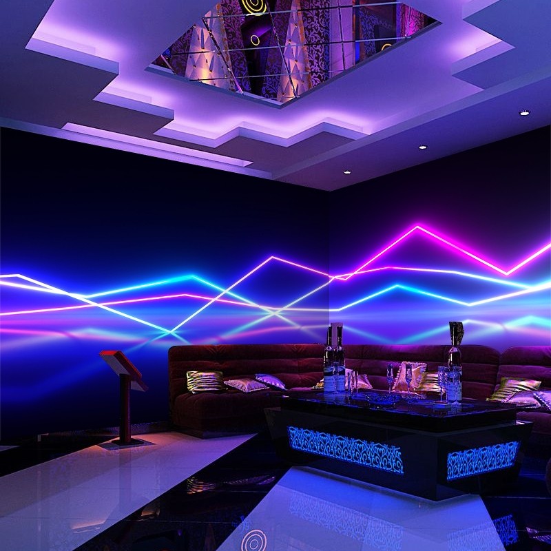 ktv酒吧包厢墙纸3D立体科技感发光墙布酒店会所网吧歌舞厅壁纸