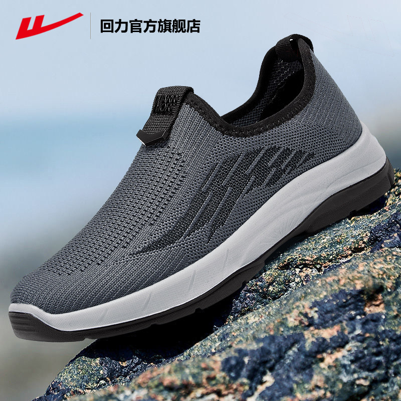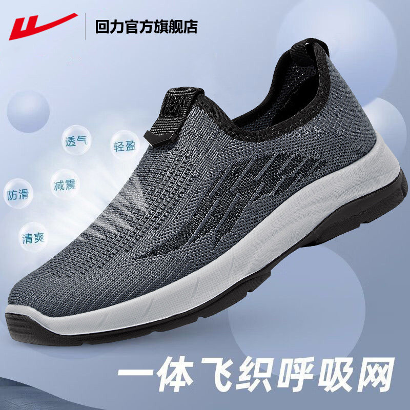 回力官方旗舰店男鞋春夏透气一脚蹬爸爸鞋男士老人网面老北京布鞋