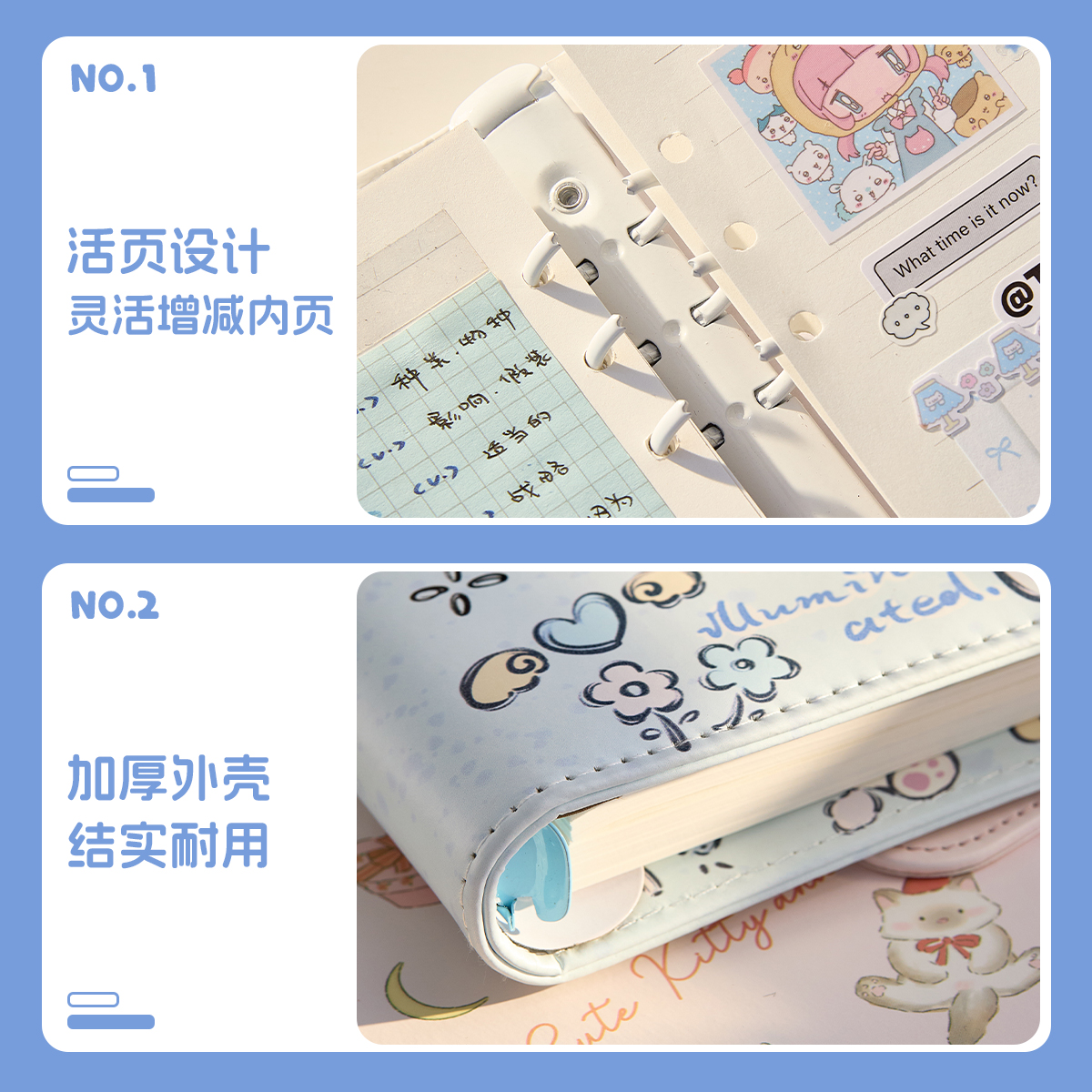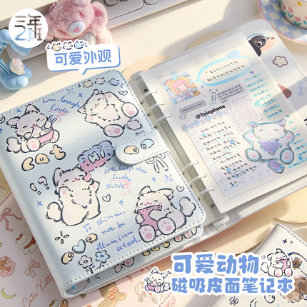 三年二班可爱动物磁扣活页本A5加厚高颜值笔记本子女生手账日记本