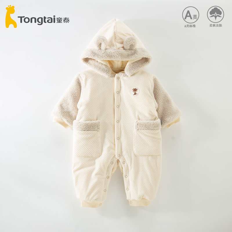 童泰婴儿冬季加厚连体衣宝宝连帽哈衣男童女童2025新款外出服棉服
