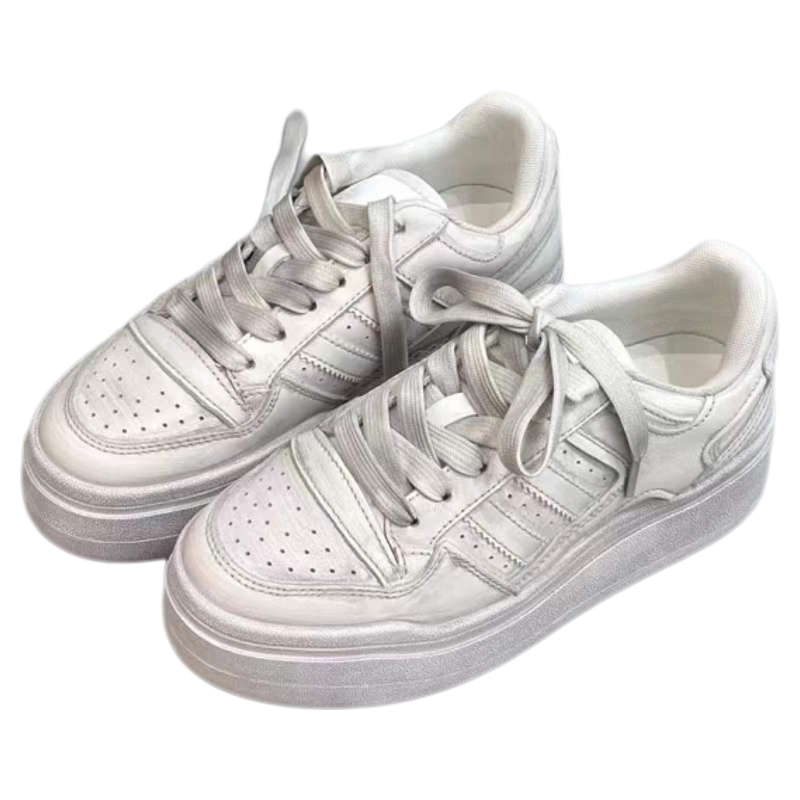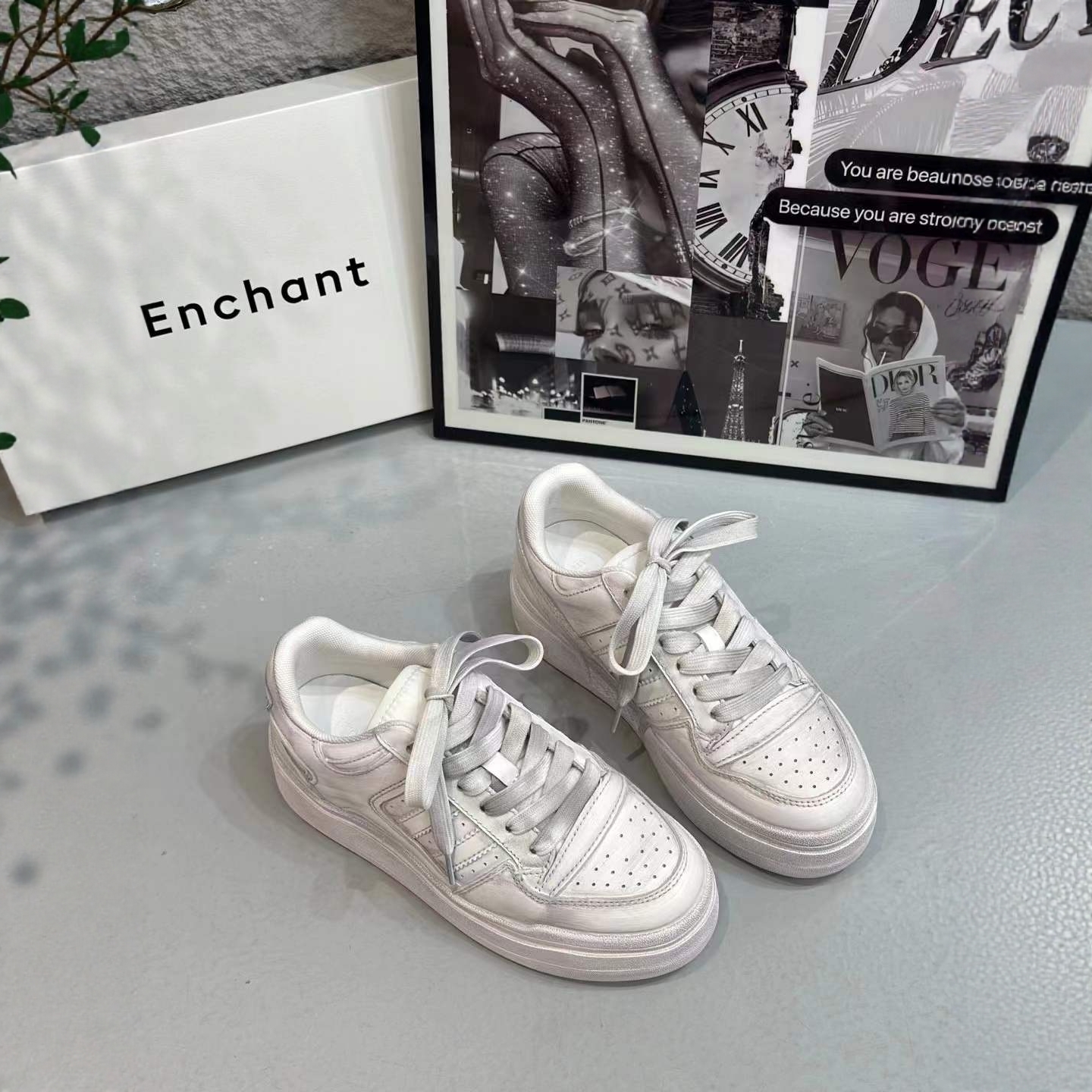 欧货旎彩EC秋款女鞋2025新款时髦做旧擦色增高板鞋女厚底小脏鞋女
