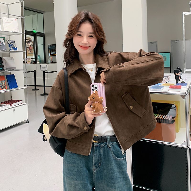 美拉德短款麂皮绒外套女春秋冬美式复古慵懒chic又酷又飒皮衣夹克