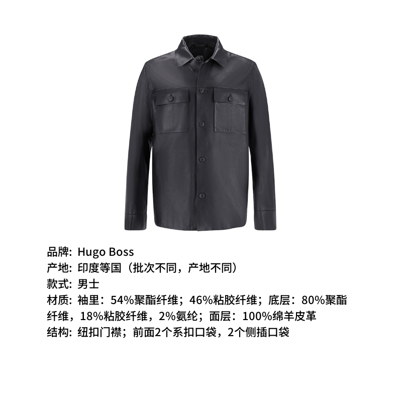 Hugo Boss 男士衬衫式皮衣皮夹克上衣外套50543222