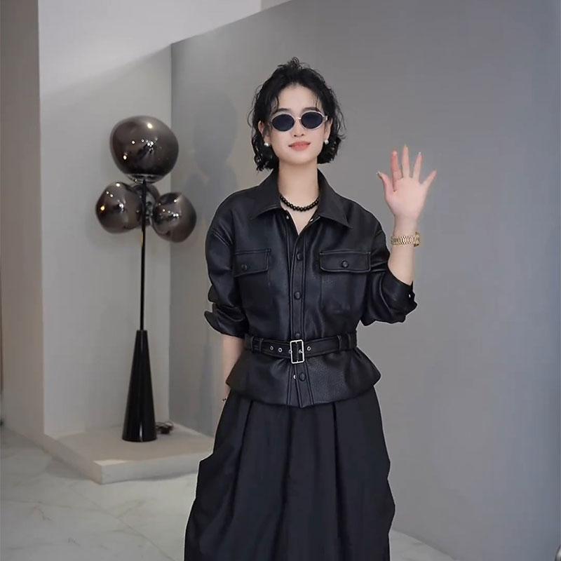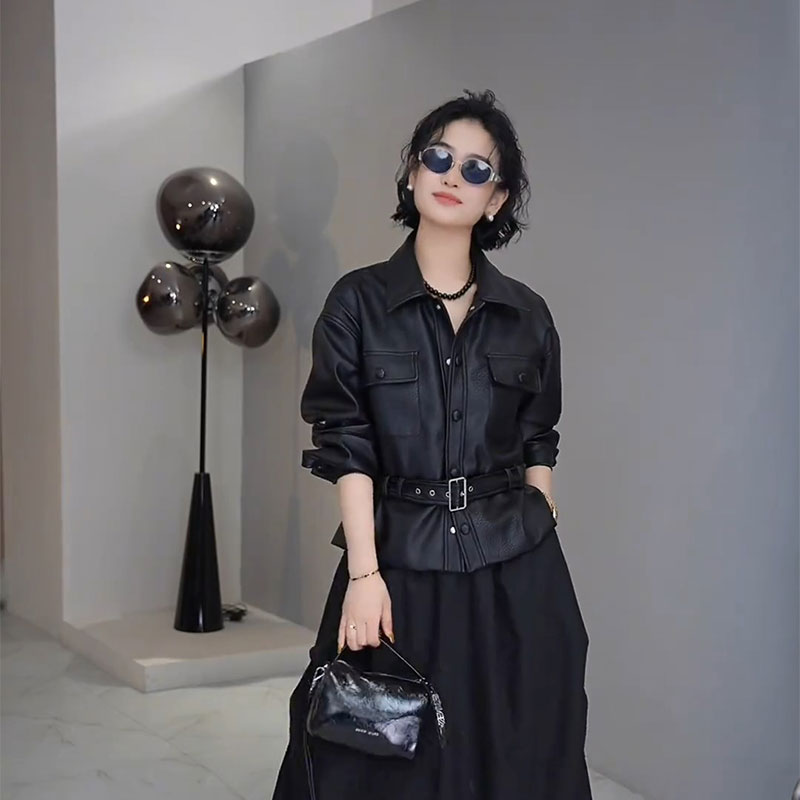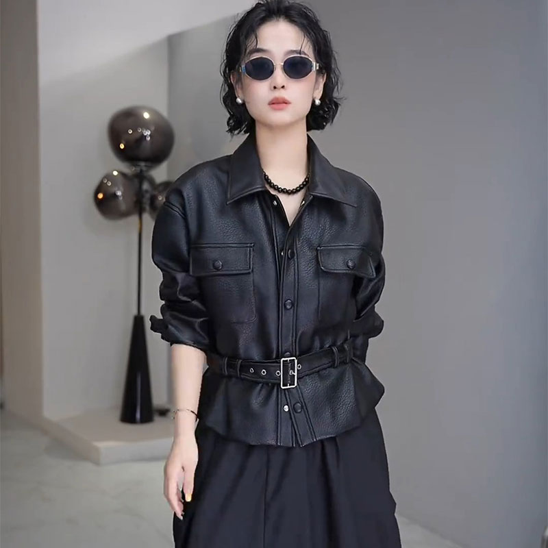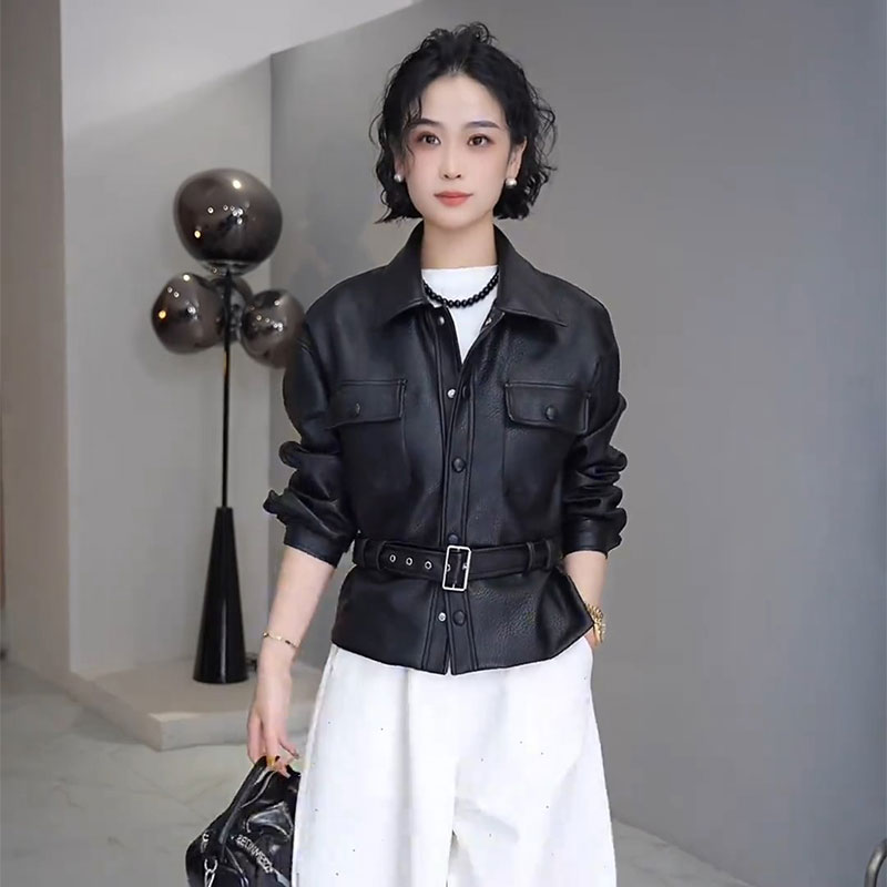 【宋佳同款】皮衣外套女2025早春新款短款腰带收腰皮夹克欧洲站潮