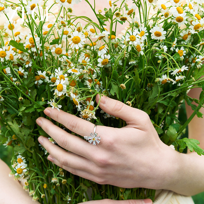 ZEGL设计师雏夏系列小雏菊蜜蜂戒指女简约可爱开口指环花朵食指戒