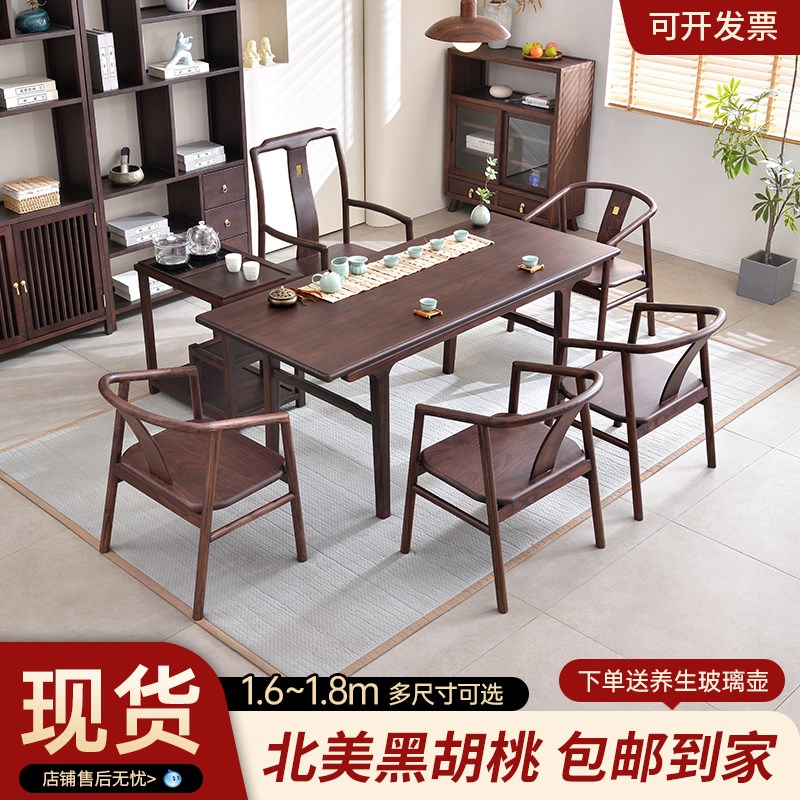 高端实木茶桌g椅组合简约现代大板桌办公家用功夫茶台茶桌一体两
