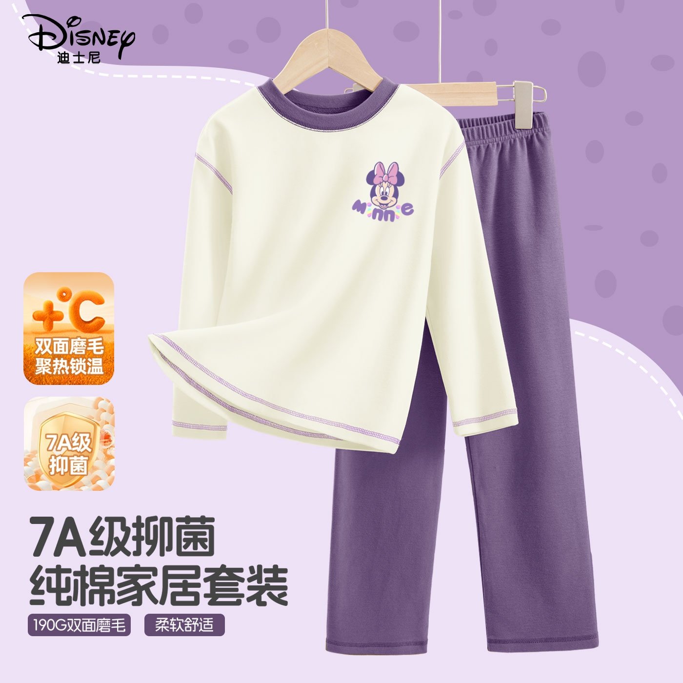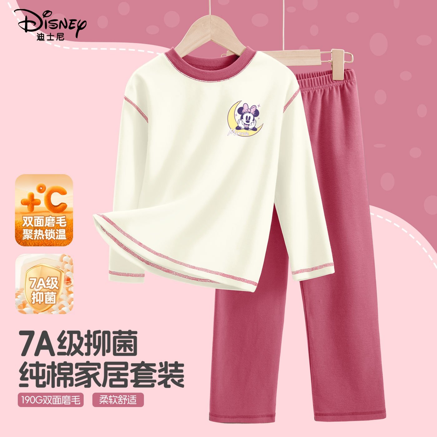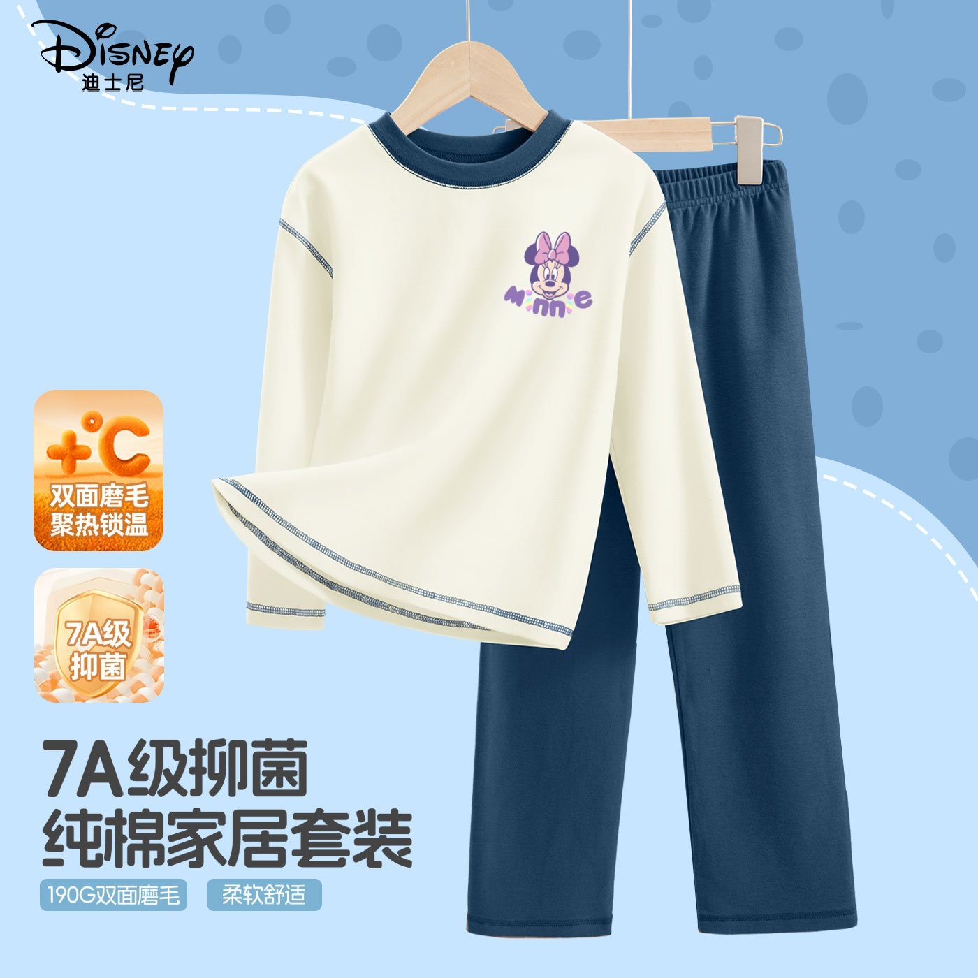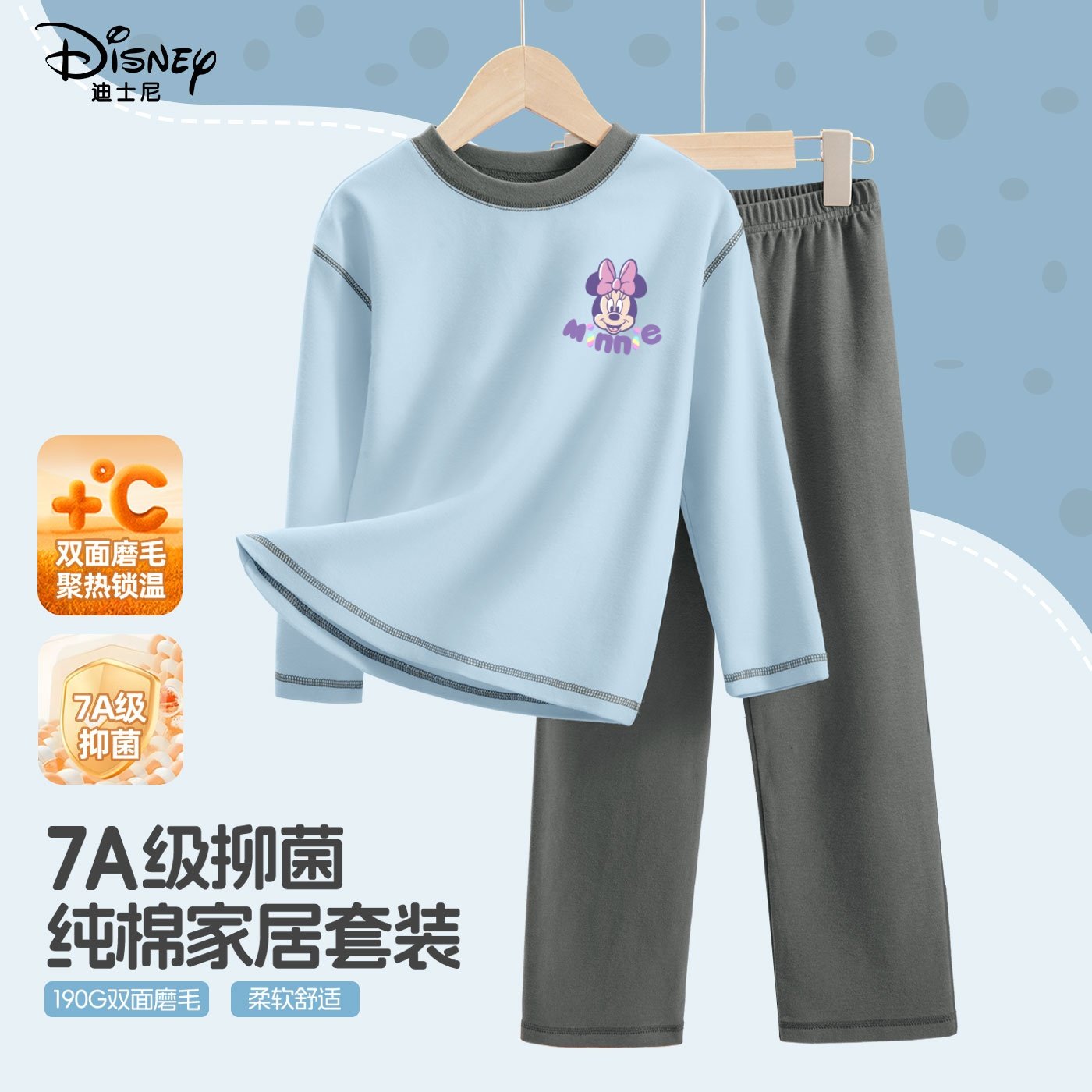 迪士尼7A抗菌家居服睡衣睡裤两件套儿童纯棉秋衣秋裤套装男女童